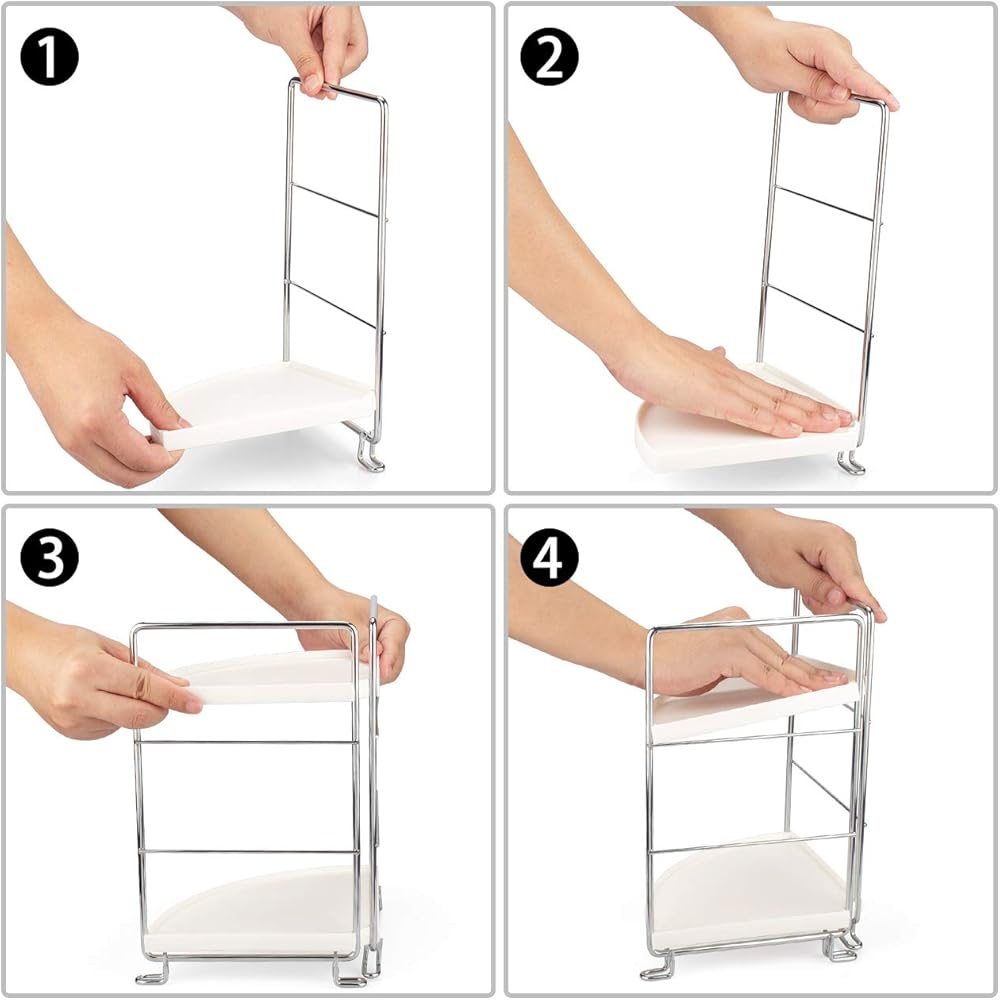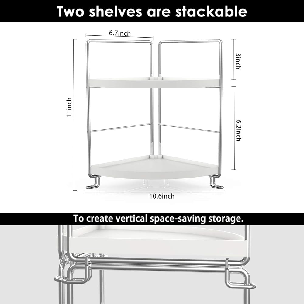 CAN BE ASSEMBLED STORAGE : Corner storage shelf organizes small and crowded bathroom areas; Corner design maximizes unused space; Place on vanity countertops, in cabinets and under the sink; One unit provides two levels of storage to let you store and organize creams, extra soap bars, hand lotion, face creams, hair spray, makeup, powder, perfumes, body sprays and other cosmetics; Items are always at the ready when you need them; Shelf is stackable to create vertical space-saving storage.