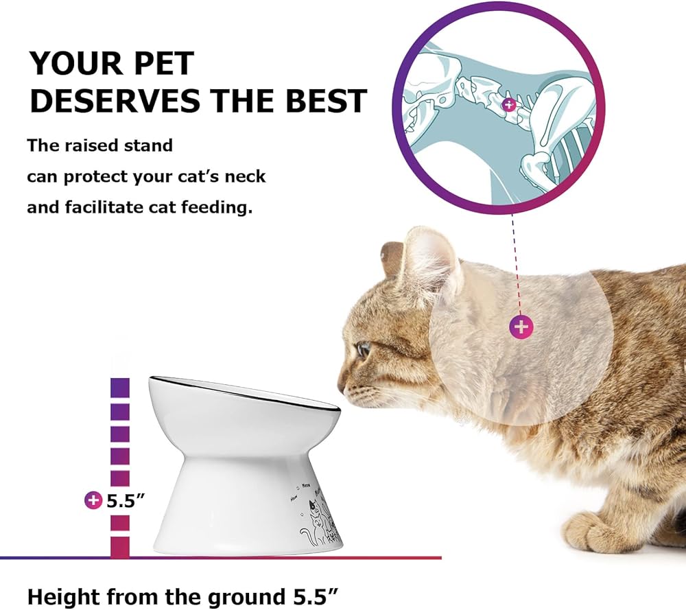 وعاء القطط المرتفع: الحد الأدنى للارتفاع: 4.4 بوصة، الحد الأقصى للارتفاع: 5.5 بوصة، يحمي العمود الفقري العنقي للقط بشكل فعال، ويمكن لقطتك الجلوس وتناول الطعام بشكل مريح.