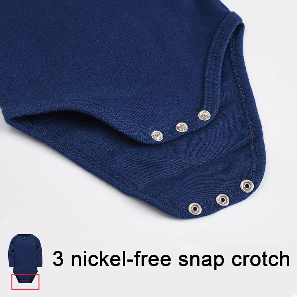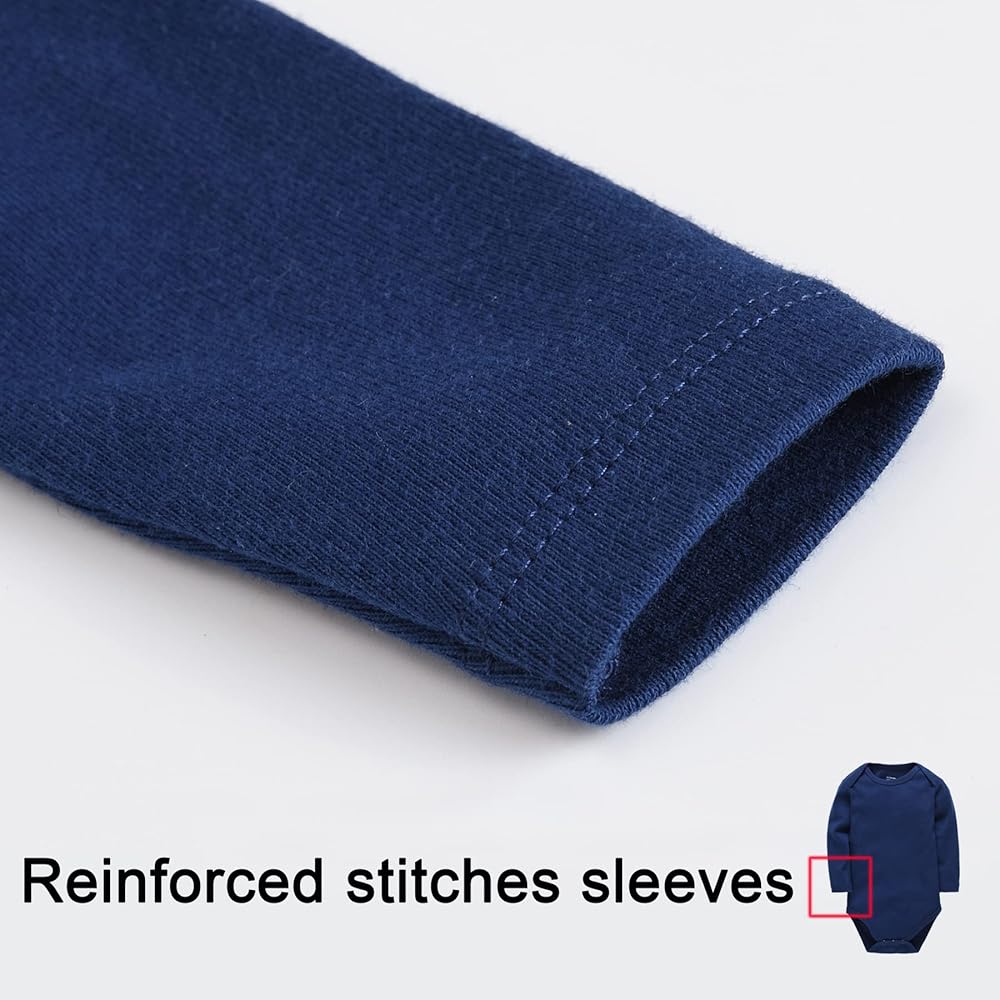 The long sleeve baby bodysuits pack are machine washable and won't shrink or fade. High quality fabric keeps it's shape without stretching out over time