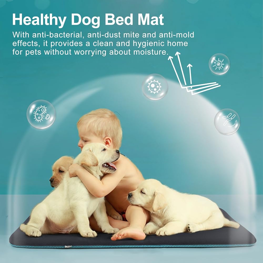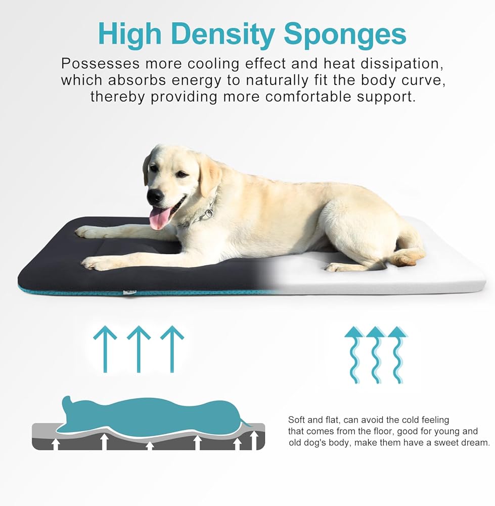 HIGH QUALITY DOG BED: The dog bed mat is made of high quality facecloth and healthy high elasticity sponge, super soft and comfortable for dogs to lie down for a long time. The soft surface is scratch resistant, but not chew proof.