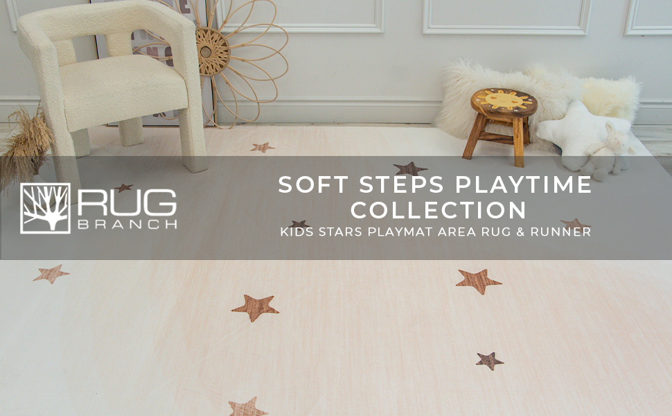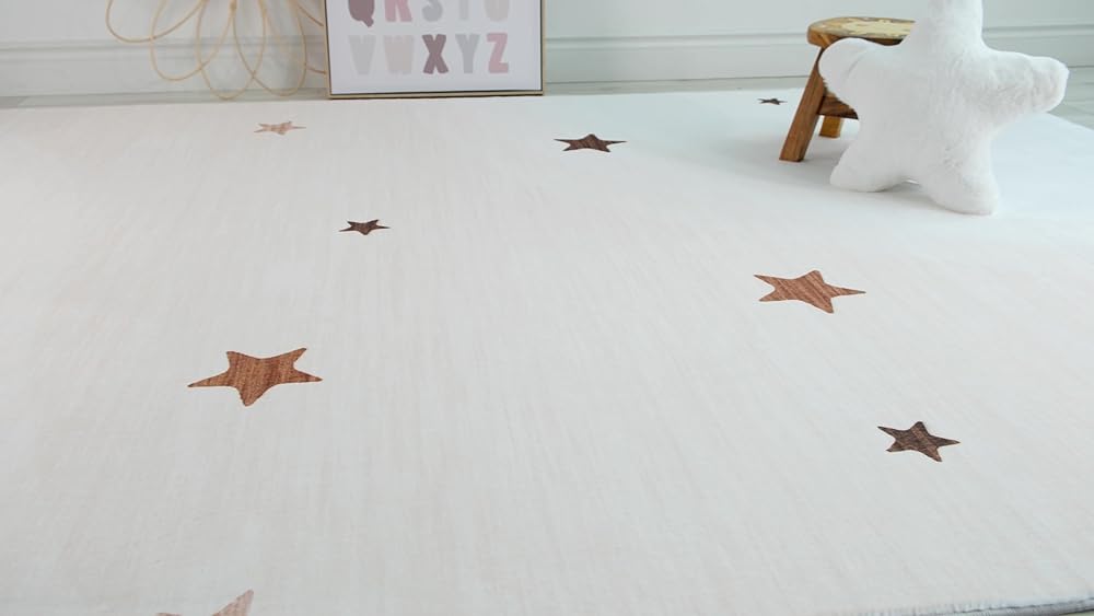 RUG BRANCH Soft Steps Playtime Kids Stars Playmat Cream Indoor Soft Area Rug for Boys & Girls in Playroom, Nursery, Bedroom - 8' x 11' (Exact Size: 7'7" X 10'10")
