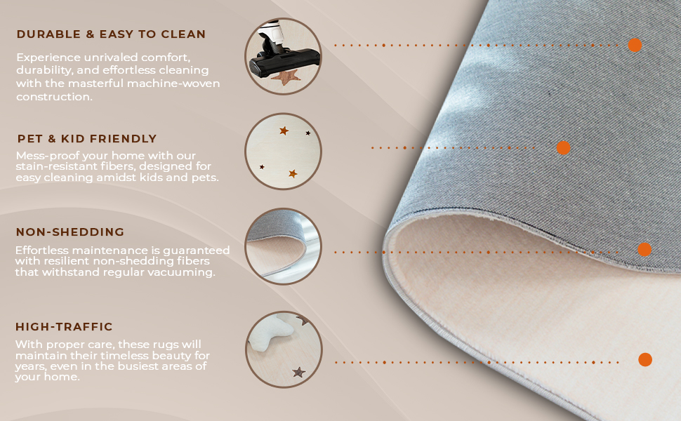 STYLE AND SIZE: This spectacular 7'7" x 10'10" indoor area rug has a star design and a pile height of 0.4", making it ideal for high-traffic areas of your home like the entryway, the corridor leading from the kitchen to the living room, and the walkways in the hallways connecting the bedrooms.