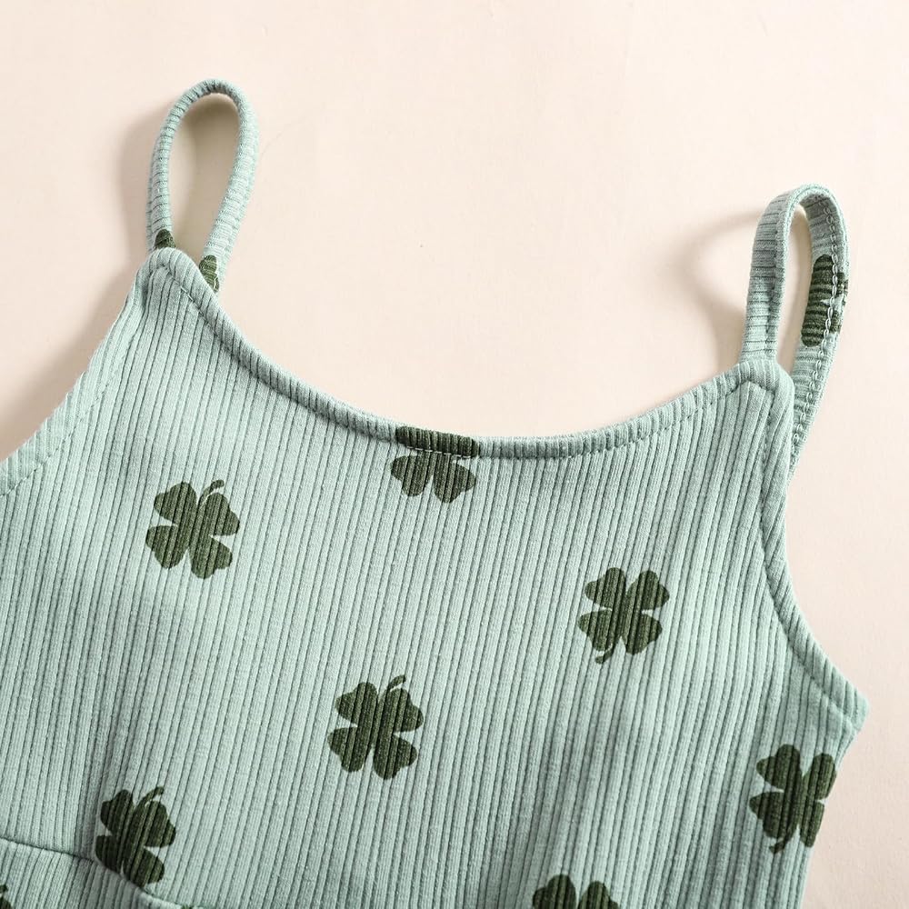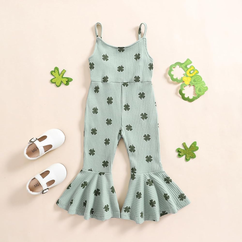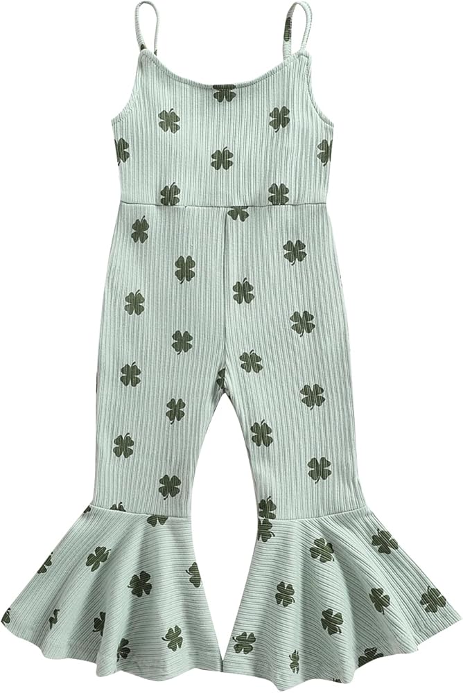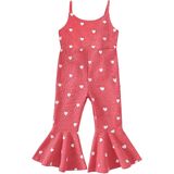 Toddler Baby Girls Bell-Bottoms Jumpsuit Ribbed Sleeveless Spaghetti Straps Romper Heart Valentines Outfit