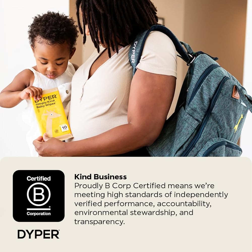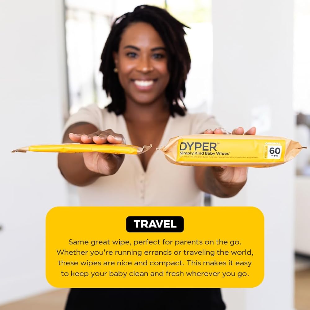 DYPER Baby Wipes | 99% Water-Based | 100% Plant-Based | Hypoallergenic for Sensitive Skin | Honest Ingredients | Fragrance Free | Plastic-Free (60 Travel Wipes (Pack of 6))