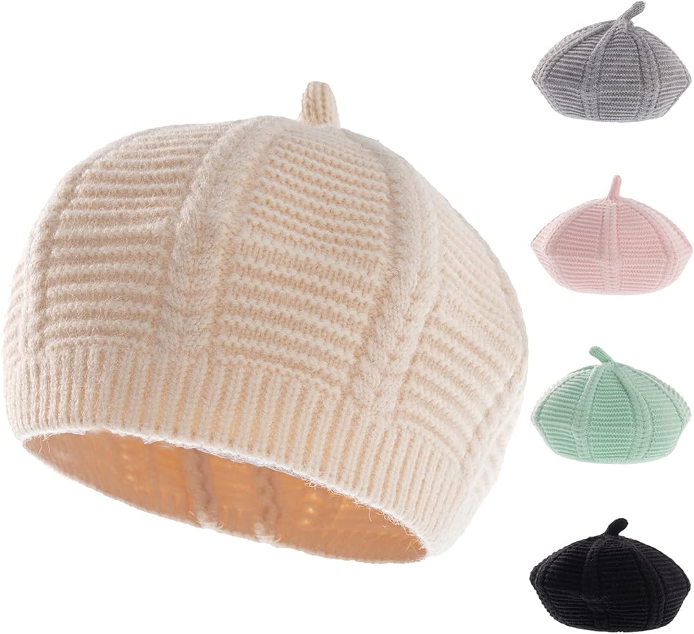 【Baby Winter Beret Hat】In the cold winter, babies need a cozy and warm hat to prevent colds. Our baby winter hats are available in 5 different colors (pink, beige, gray, black and green). It is suitable for both boys and girls, and it is great to match baby's winter outfits.