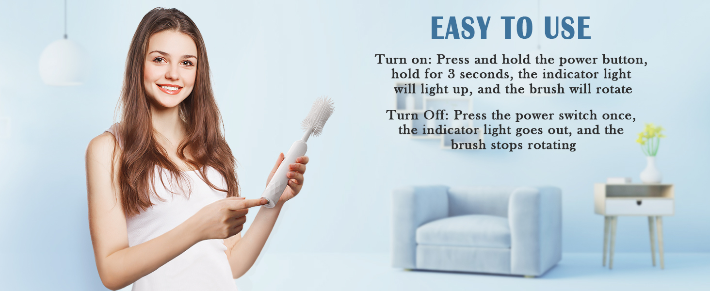 🍼【BOTTLE BRUSH SET】This bottle brush set contains electric handle, bottle brush, nipple brush, straw cleaning brush,easy to clean every part of bottles, with interchange brush head, make them more durable. Different bristle materials and sizes, make you to easily handle different scrubbing tasks,When using, please press and hold the start button for 3 seconds to start it. When closing, simply press the start button to close it