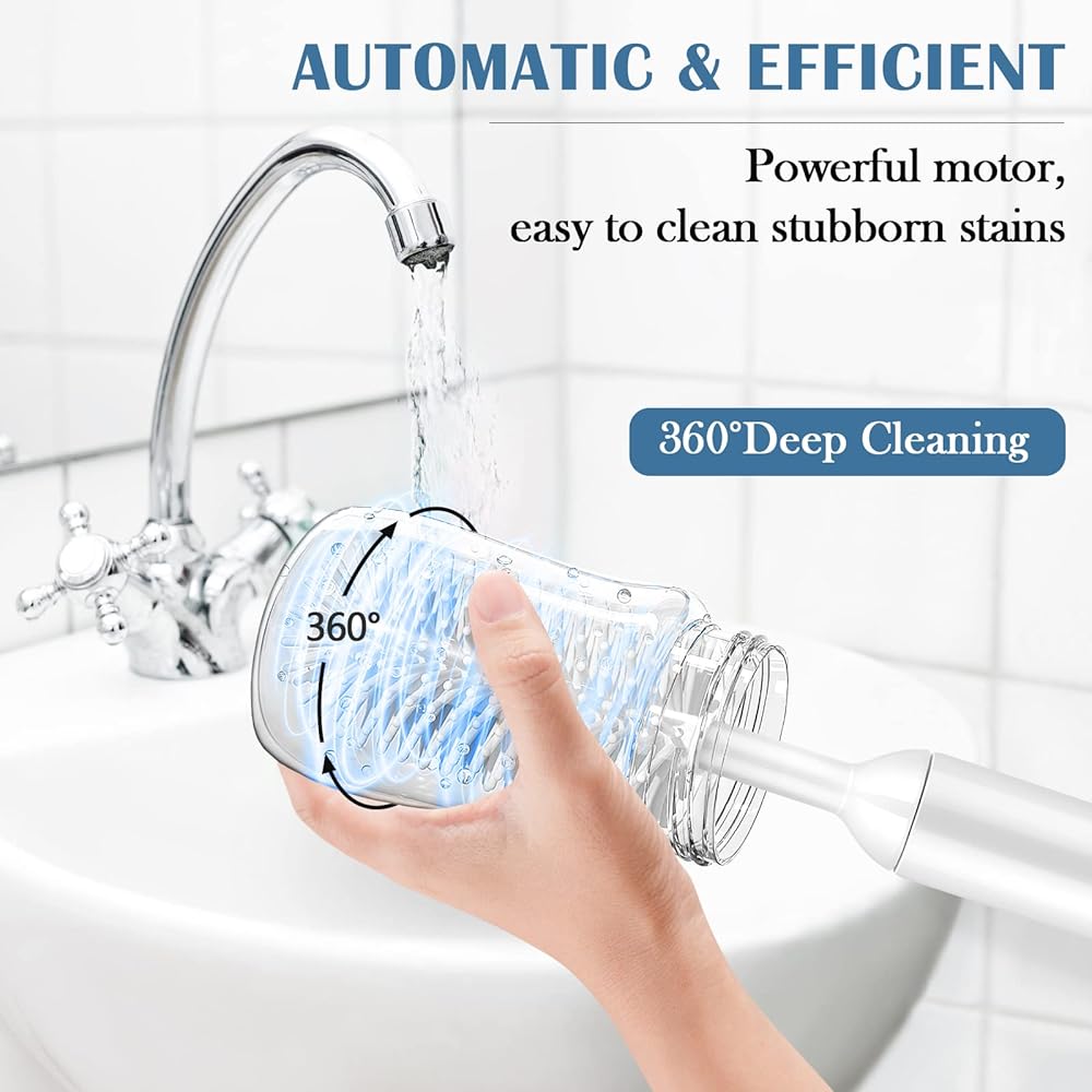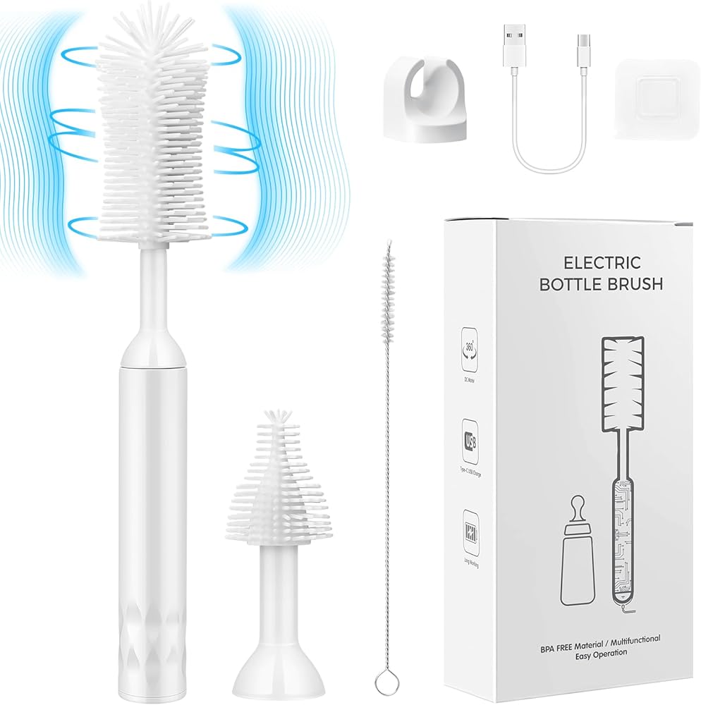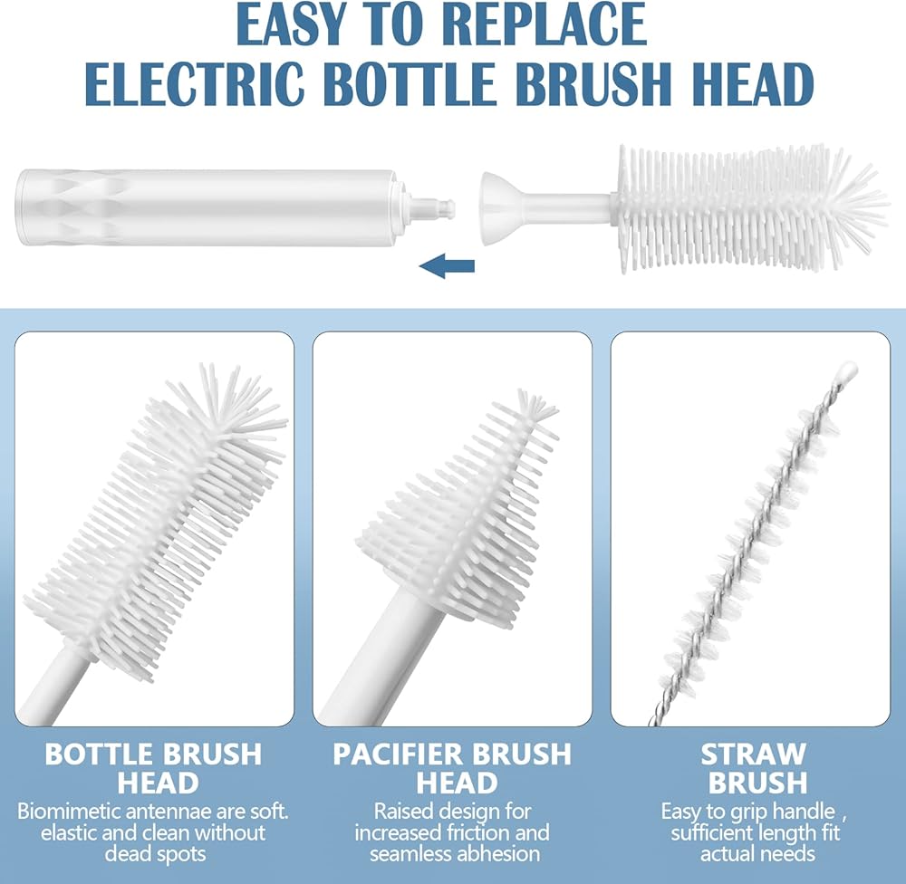🍶【MULTIFUNCTIONAL BABY BOTTLE CLEANER】Bottle Cleaner Brush set Equipped with a 1200mAh lithium battery,this brush set can run for hours on a single charge.Say goodbye to tedious manual cleaning and hello to effortless, efficient cleaning with our electric silicone bottle brush set. This bottle brush set suitable for cleaning all kinds of baby bottles,water bottles, feeding bottles,pacifiers, straws, etc.