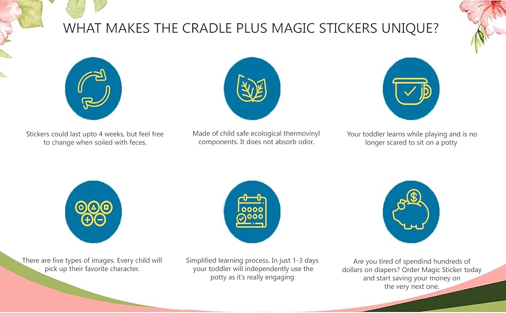 Pack of 5: Each portable potty sticker is reusable for weeks, but not only is potty training not usually that long. but we know how gross it will be to try to clean the sticker when it comes in contact with feces so go ahead and trash it. We have got your back with 5 Stickers and a free potty training book for you.