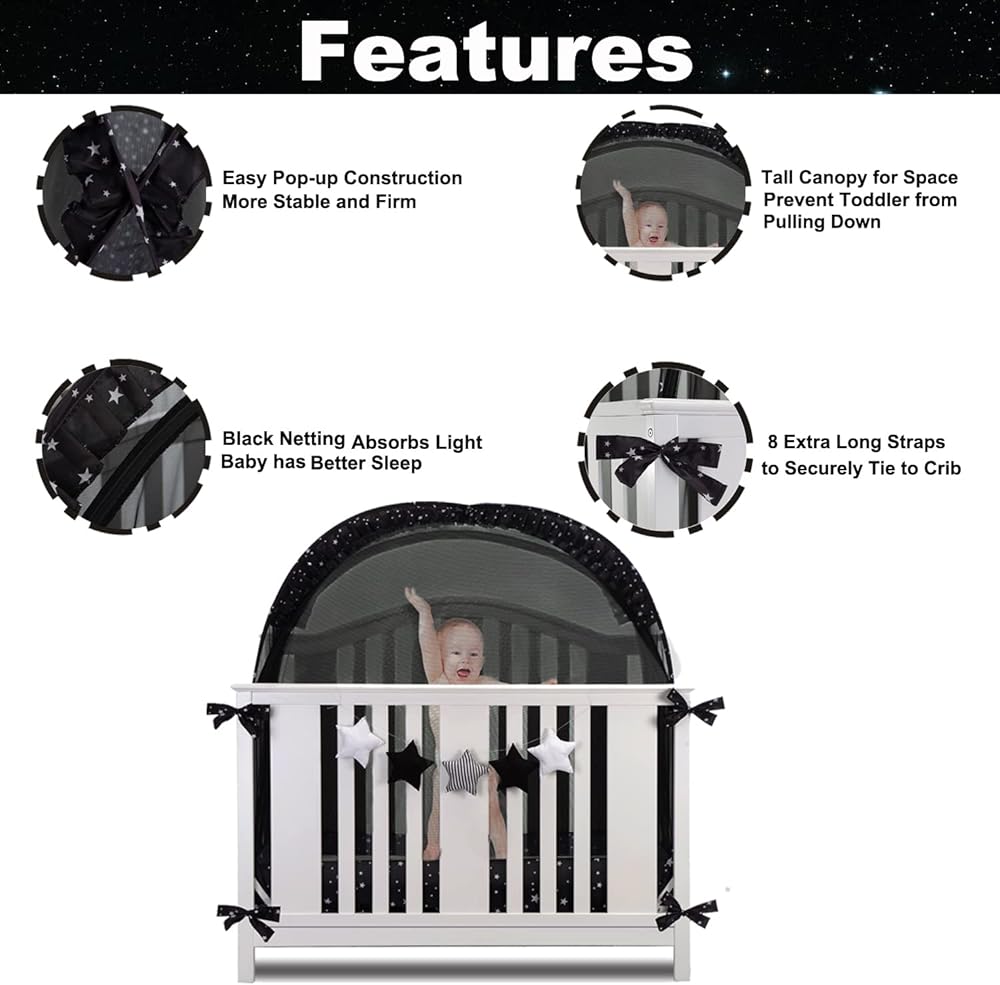【Create Quality Sleep】 Black crib netting absorbs light and glare can help baby settle better and sleep longer. The crib tent with see-through mesh provides a clear view, so you can easily see your baby at a glance. Honeycomb mesh structure can allow air to fully circulate, thus ensuring the baby's comfort and health.