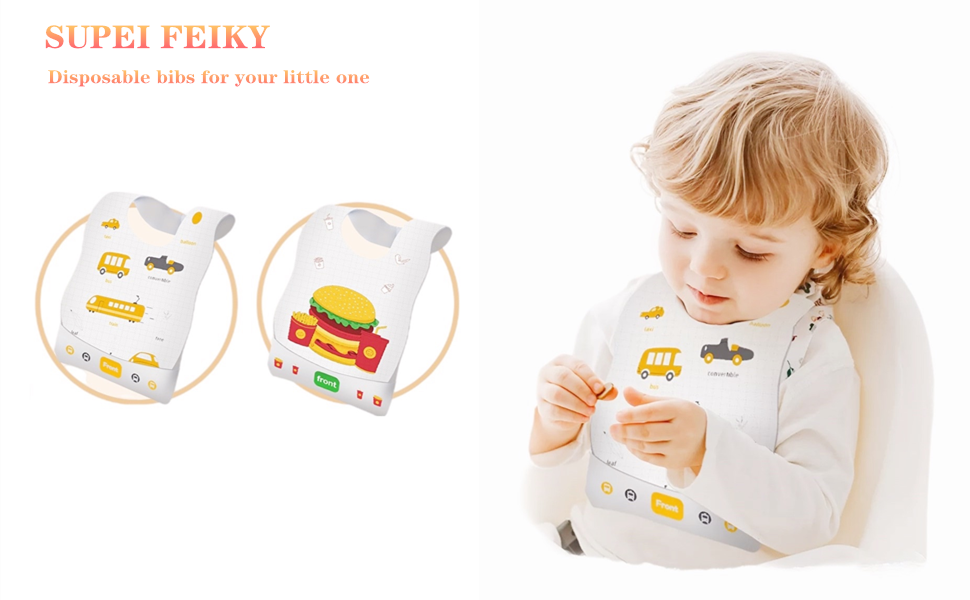 【Adjustable Size】Our disposable bibs are suitable for toddlers that age 6 month to 6 years. Just peel off the adhesive patch and stick this bib on the clothes, big size to cover chest, preventing fallen food on babies' clothes.