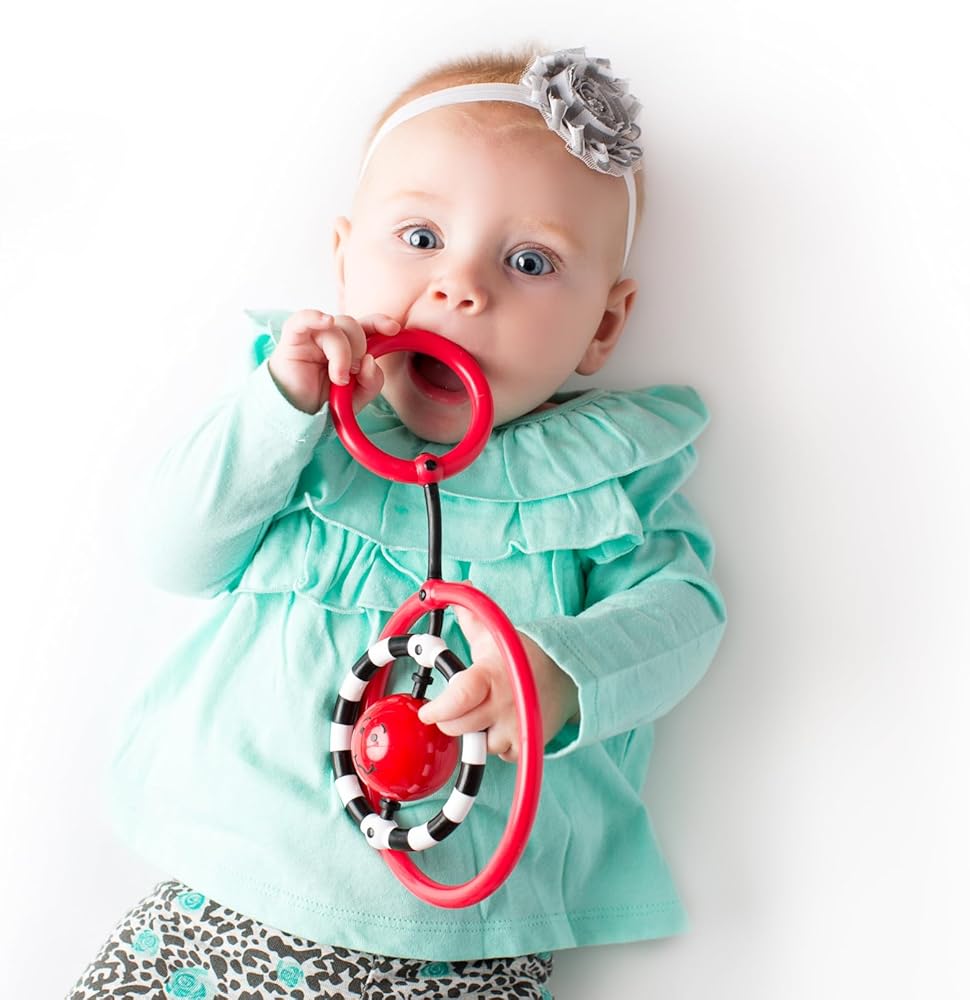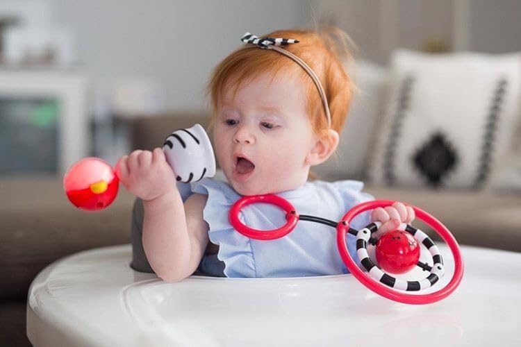 The NogginRings has contrasting colors to help your baby learn visual tracking – a critical pre-literacy skill and a necessary precursor to reading. Its eye catching design promotes tactile interest and the flexible rings enhance reaching, grasping and transferring from one hand to the other, all important foundational skills for future learning.