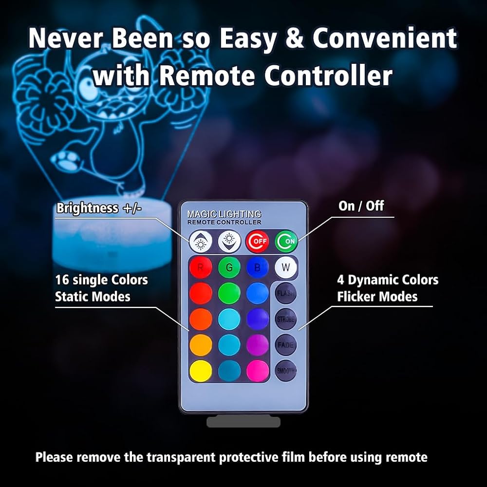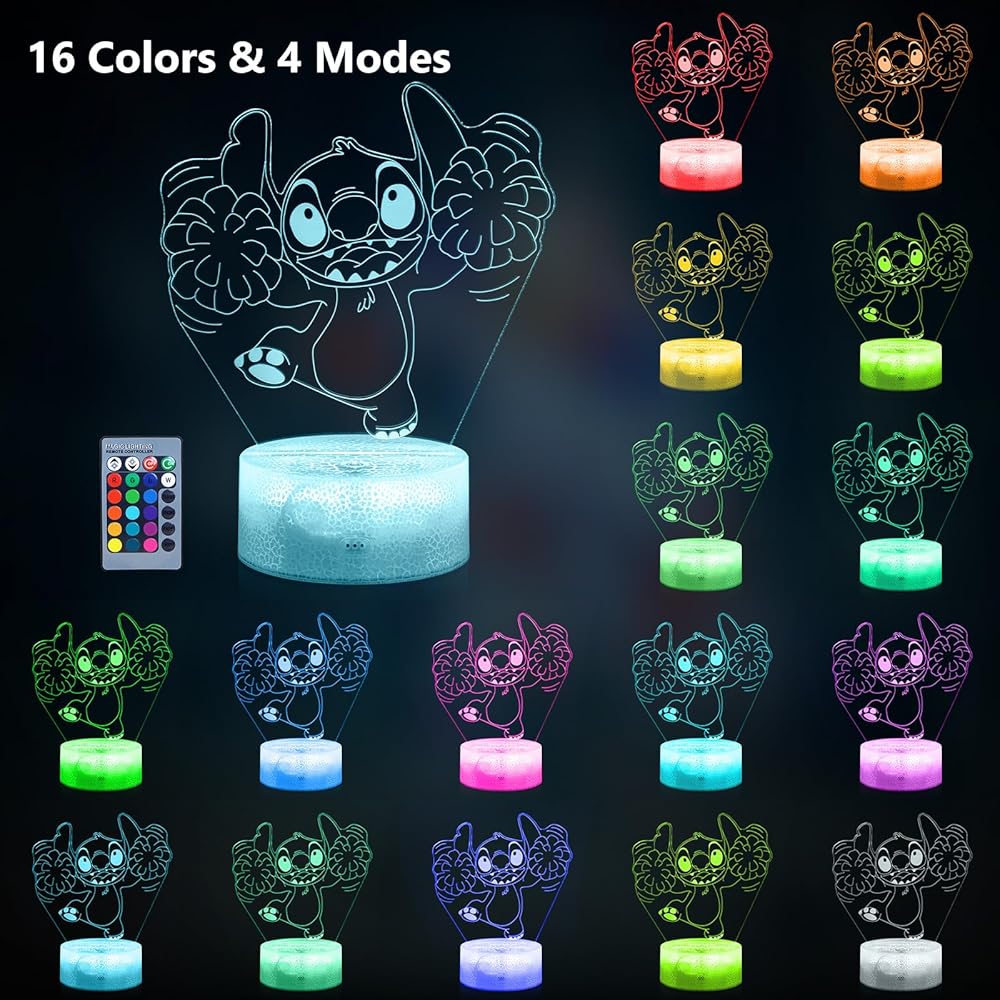 Stitch light Stitch Gifts for Girls: Stitch Night Light with Remote Control 16 Colors, Stitch Room Decor for Kids, Stitch Stuff Birthday Party Decorations Festival Christmas Gifts for Family Friends