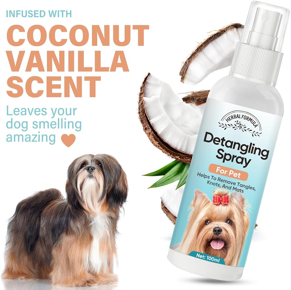 Dog Detangler Spray: A Must-Have for Dogs' Fur Knots, Tangles and Mats, Make Doggies' Coat Smooth and Smells Good.