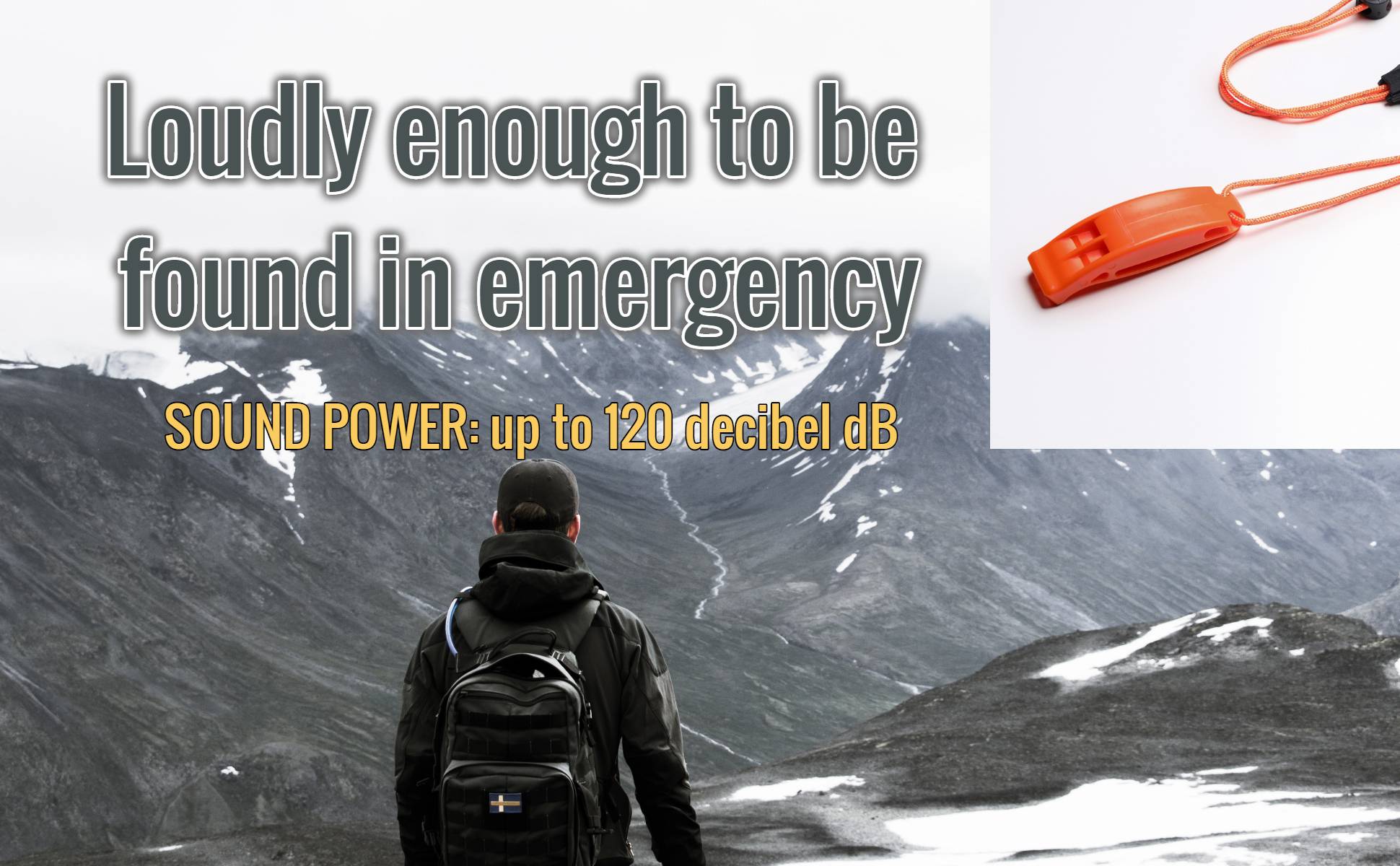 SUPER LOUD survival whistle: double tubes emergency whistle, high pitched powerful noise maker with dual sound chambers, can provide up to 120 decibel dB sound power, enough to be heard over a mile away. Cannot be overblown, works great as signal whistle.