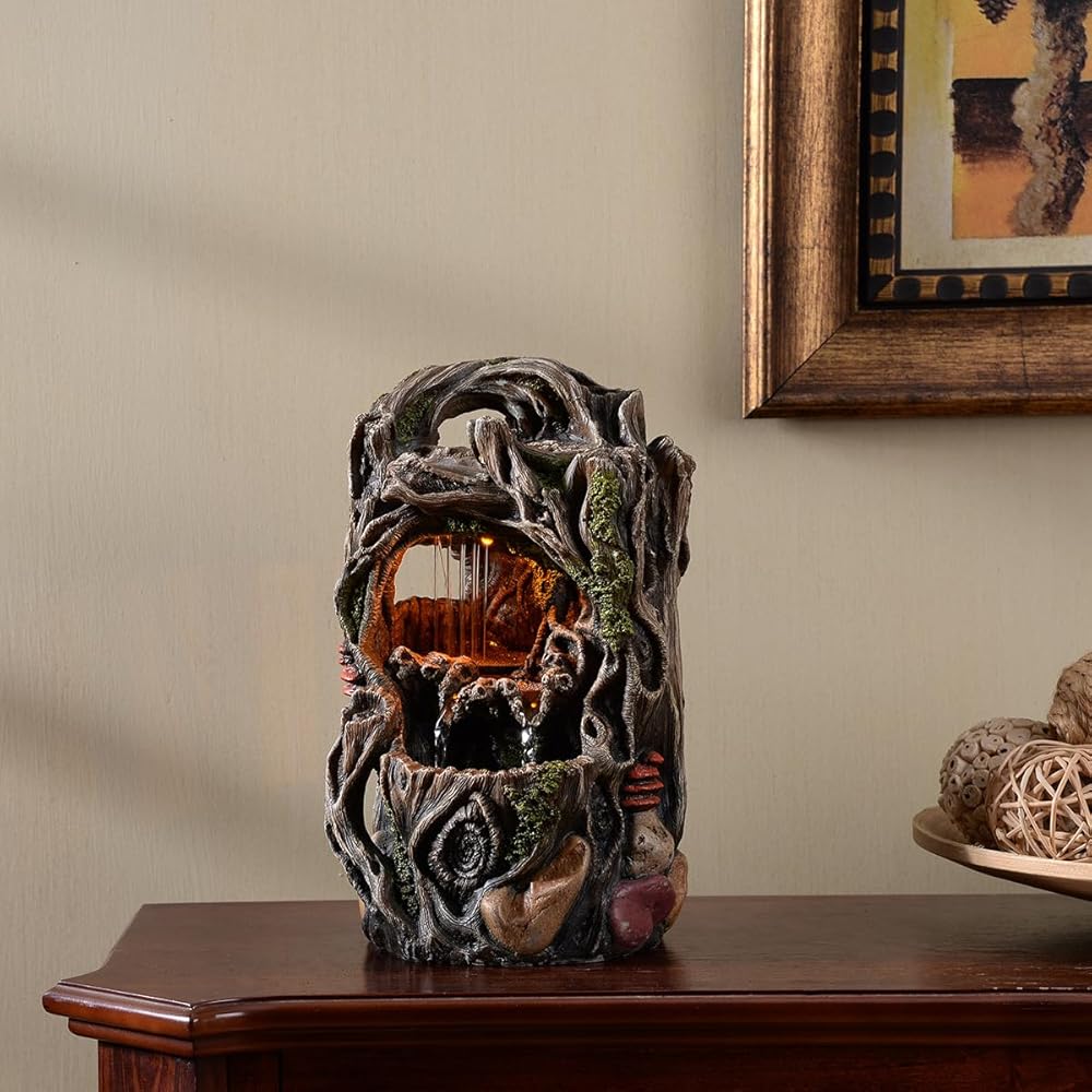 Tabletop Water Fountain, Home Décor Soothing Sound Machine with Automatic Pump, Nature Tree Stump Resin and for Indoor Zen Relaxation for Office, Living Room, or Bedroom Décor