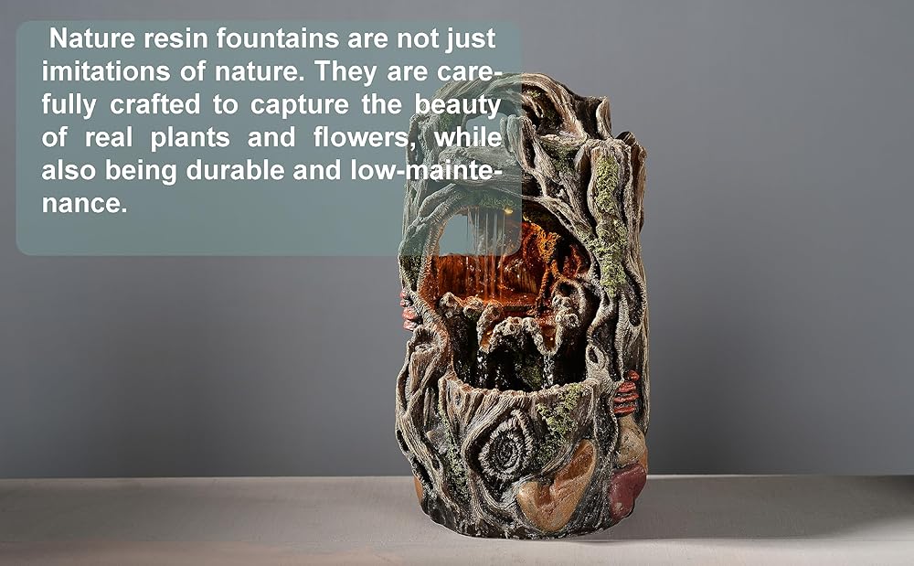 【Premium Material and Unique Design】This Tree Stump fountain is made from high-quality sturdy resin, hand-carved and crafted, making it lightweight, durable, and long-lasting. The atomizing effect creates a lifelike and unique desktop fountain that is perfect as a gift.