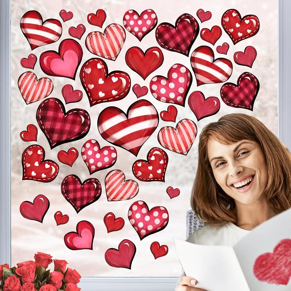 Valentine's Day Decorations: The adorable design with vivid and vibrant patterns like red and pink love hearts, tartan checker, white stripes, polka dots which graced the windows and add the romantic atmosphere of Valentine's Day to your home. DIY a magic space for your farmhouse, home, kitchen, bedroom, living room in Valentine's Day