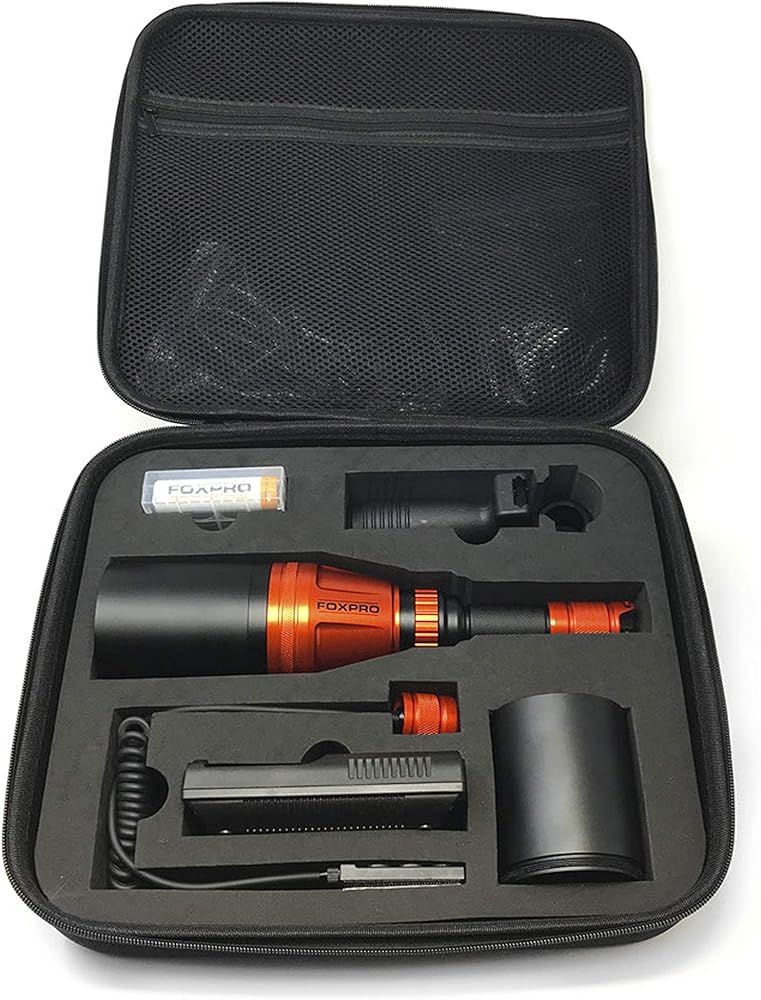 The FOXPRO Gunfire Kit is the perfect choice for nighttime predator hunters. This all-in-one gun mounted light kit comes complete with the Gunfire light, (2) 18650 batteries, 18650 advanced battery charger, wall plug/USB charge cord, car charger adapter, wired "quick access" gun stock remote, scope/light mounting bracket, pistol grip light holder, and (2) extension shrouds. The light and accessories all pack up neatly into the included EVA foam soft shell kit with a handle so you can safely take your light on the go. The Gunfire light is a quick color change, 3 color LED predator hunting light, using the brightest LED's available today. The Gunfire is all metal construction, yet extremely lightweight so it can handle the toughest in-field use while adding as little weight as possible to your setup. Quickly switch between the 3-color LED's by rotating the color selector switch without having to take your eye out of the gun. Turn the light on and off or adjust the brightness of the light by operating the dimmer switch on the tail cap. Focus the beam to a specific spot or open it up to flood the field by rotating the beam focus ring at the end of the light. Keep the light off of your gun and better concealed by screwing on the included metal shroud(s) to the end of the lens of the Gunfire. The FOXPRO Gunfire Kit is backed by a 3 year LED replacement warranty, a 1 year tail cap and accessories warranty, and FOXPRO's unmatched customer support.