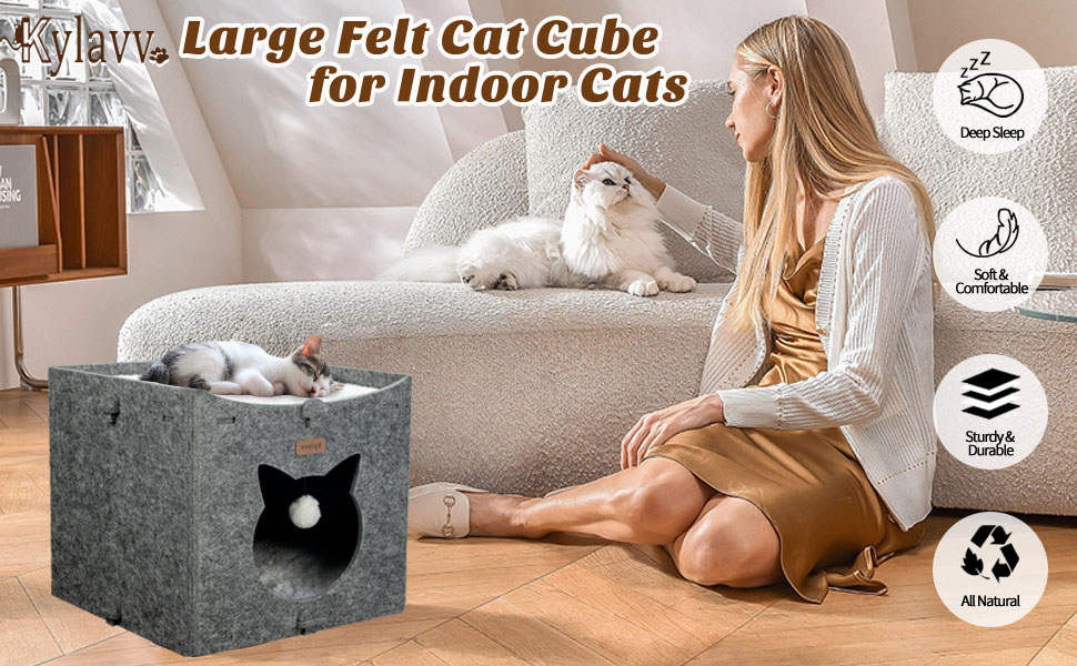 سهلة الطي وتوفير المساحة: أسرة ومنازل القطط المغلقة، يمكن تجميع أسرة القطط الداخلية بسرعة وطيها بشكل مسطح لسهولة التخزين والسفر (16.5 بوصة عرض × 16.5 بوصة طول × 14 بوصة ارتفاع). يتضمن مكعب القطط سرير قطط مطوي واحد كهف، وسادتان ناعمتان قابلتان للغسل، وكرة قطيفة واحدة، و10 سدادات لباد.
