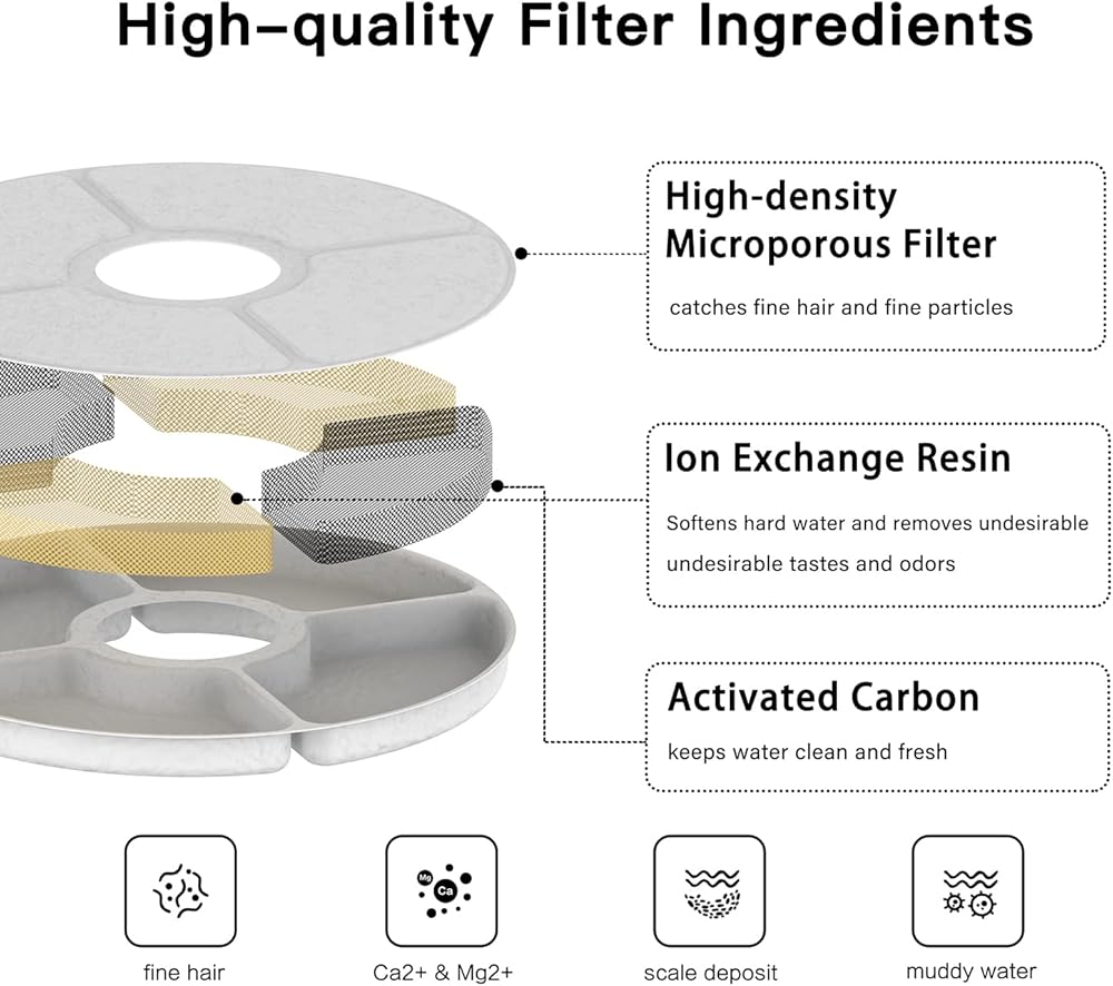 beQ Cat Water Fountain,2.5L/84oz Inside Ultra-Quiet Automatic Pet Water Dispenser,BPA Free,Visible Water Level,with a Large Size Filter,Suitable for Cats & Small Dogs (Filters, White)