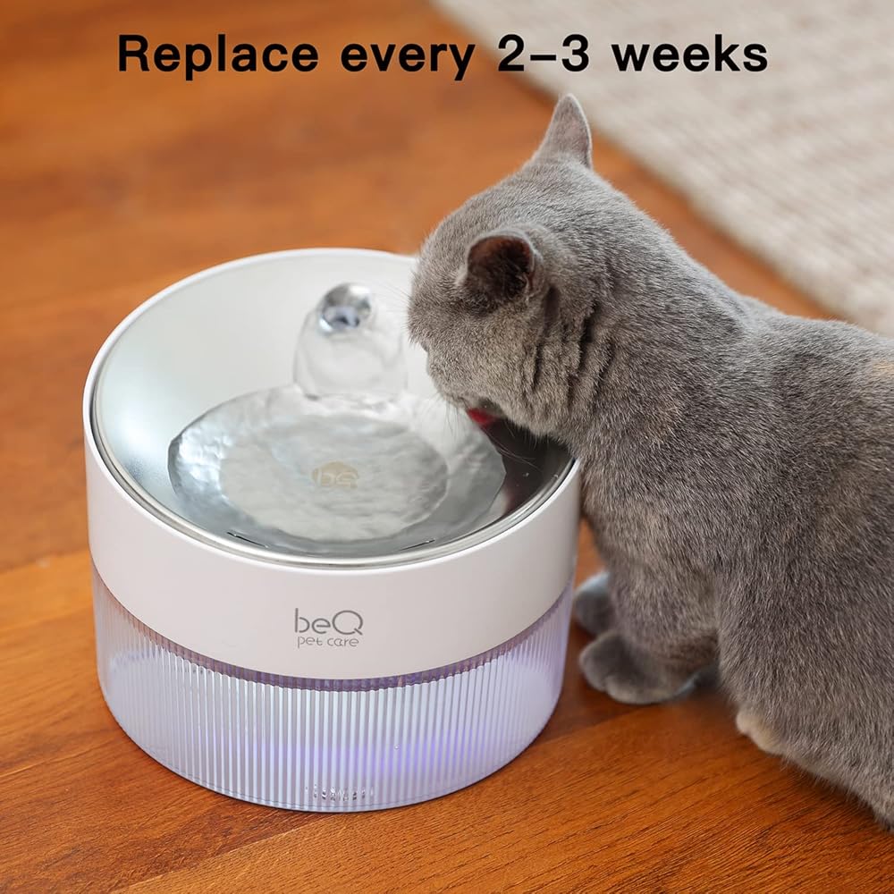 beQ Cat Water Fountain,2.5L/84oz Indoor Ultra-Quiet Pet Water Dispenser, BPA Free, Visible Water Level, Suitable for Cats, Small Dogs, and Other Pets, with Large Size Filter