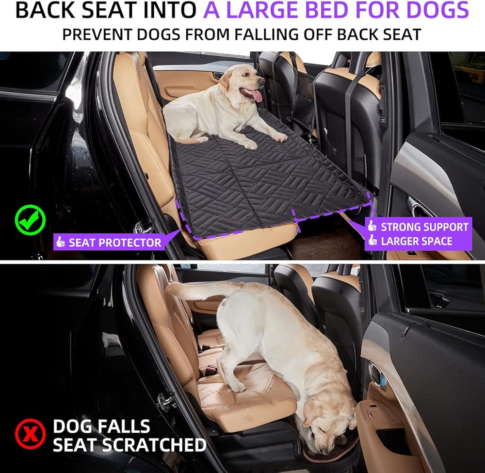 【Water and wear resistant】The back seat extender for dogs are made of high quality waterproof and hard-wearing materials.So the pet car seat is easy to clean and durable.