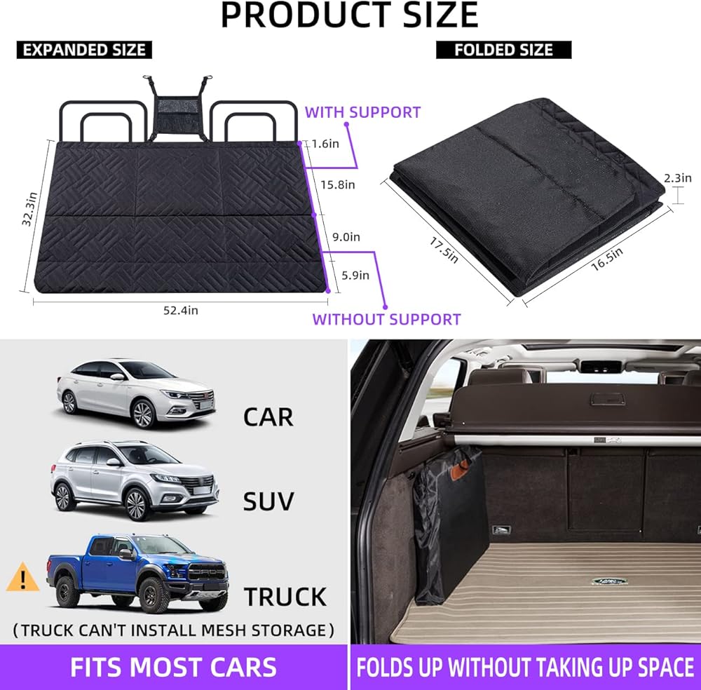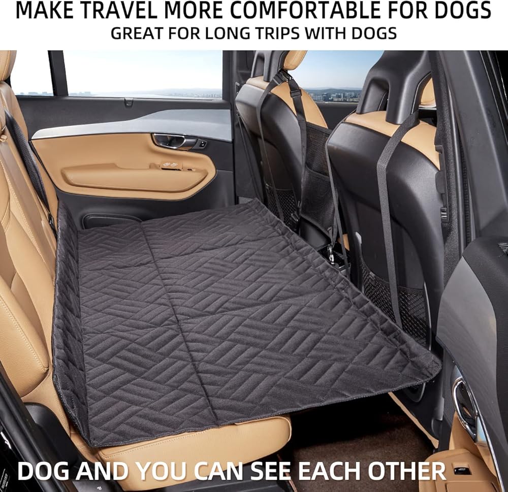 【Fits most cars】Seat extender for dogs size 10*15.Dog bed fits most cars, suvs and pickups.Note: Cars without a headrest bar or medium to large trucks can be fitted with a bed but not a mesh pocket.Dog car bed mattress suitable for small cars,suv s and trucks.