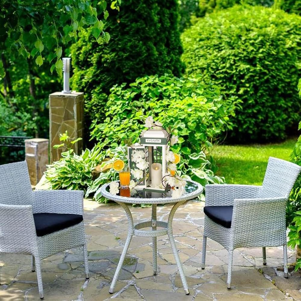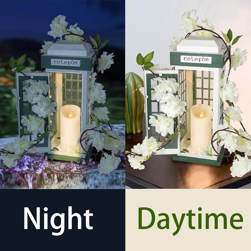 METAL CANDLE LANTERN: The shell of this Telephone Booth Panes candle Lantern made of durable weatherproof Metal. The Perfect combination with 4 good light penetration clear glass. The pure white and leaf green color not only take the elegant style, but also bring the surrounding up a notch instantly. The material improves the quality of the product and maximize the efficiency of the lighting effect more outstanding at the same time.