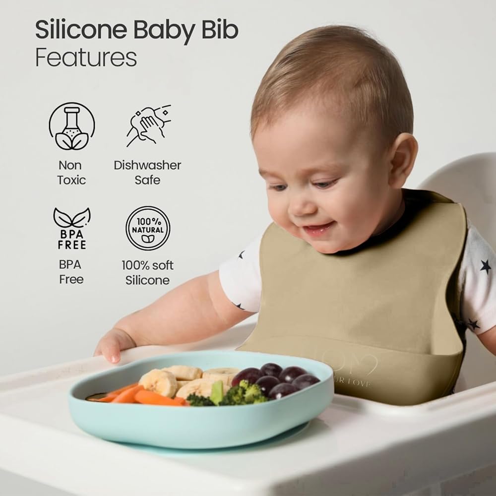 Baby/Toddler Must Have. AHOME is proud to offer you a 100% Food Grade standard waterproof bib made with soft silicone. Our Bibs offer a pouch to catch any unwated spills. NO MESS. Easy to use. Easy to clean