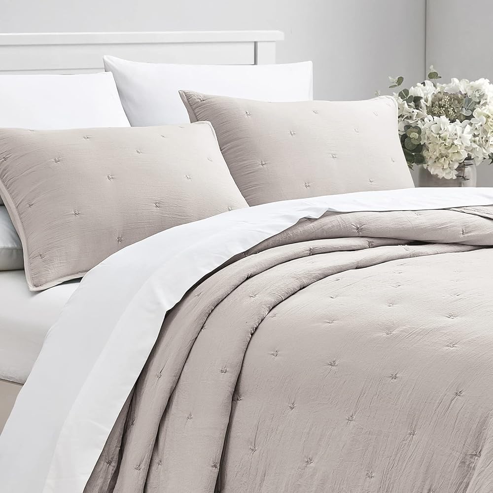 MINIMALIST DESIGN PROCESS:Full quilt set made by highest quality pre-washed microfiber and Embroidery workmanship, pre-washed again after finished,detailed star Embroidery all over the quilt, super soft lightweight cozy touch extremely warm. breathable,easy to match your bedroom decor, offering you an elegant feeling,allows for many years of continued use.