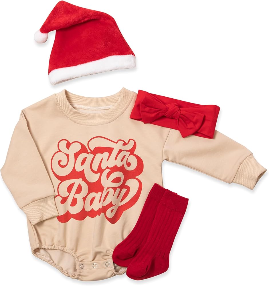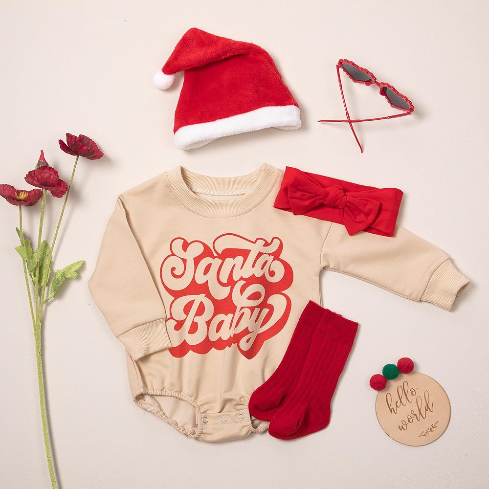 Great Value with an Amazing Gift Set! In addition to the apricot-colored pullover onesie, we also include an exquisite headband and a cute Christmas hat. This well-designed set not only adds a festive touch to your baby's outfit but also makes for the perfect gift choice. Surprise your loved ones and let your baby be the center of joy and delight during their first Christmas!
