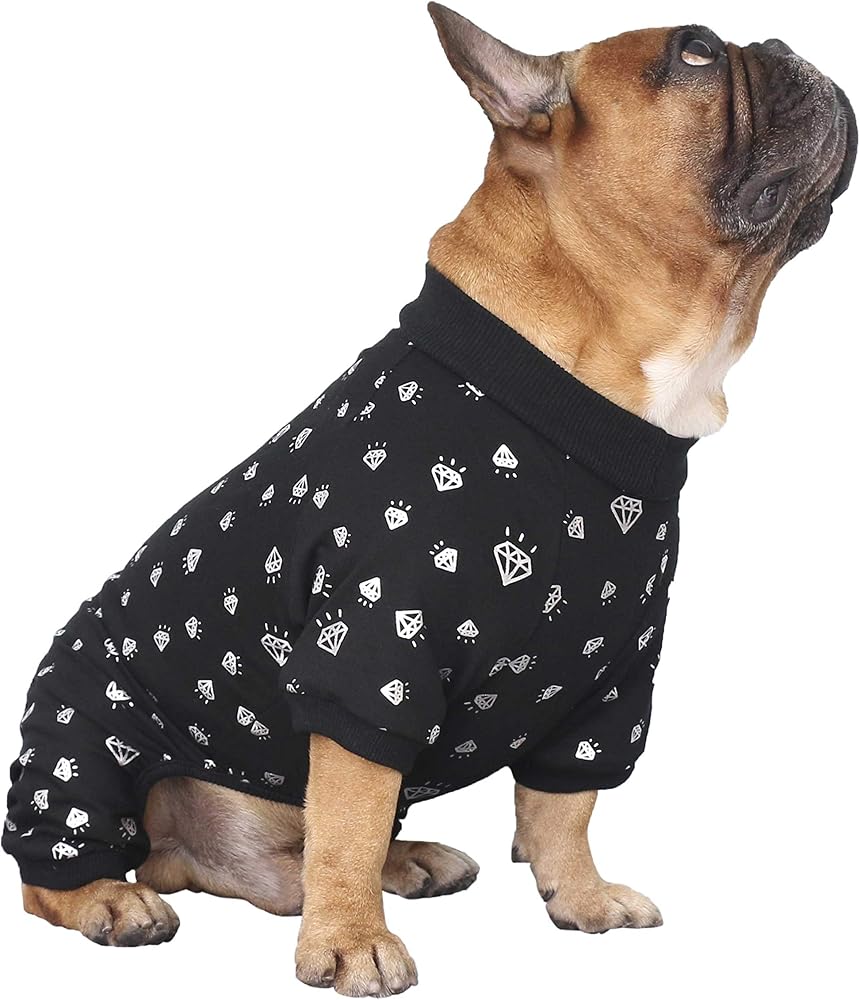 iChoue Corgi Shiba Inu Pajamas Onesie Suit PJS Bodysuits for Medium Dogs Large French Bulldog Frenchie Pug English Pitbull Boston Terrier - Black Diamond, L Plus
