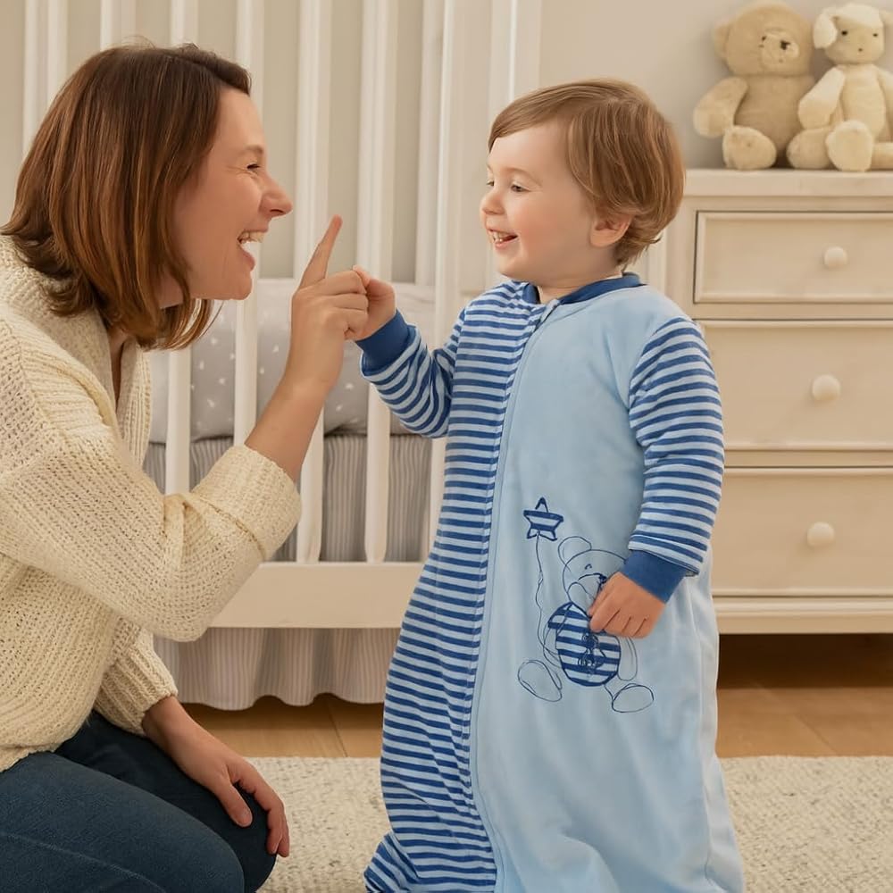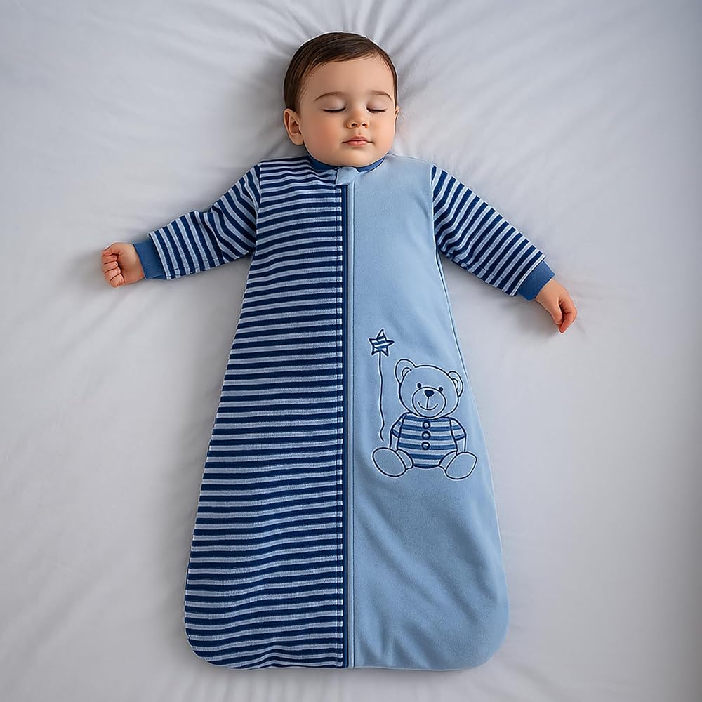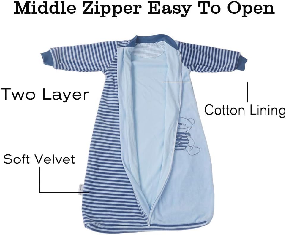 Easy Diaper Changes: Our sleep sack features a two-way zipper, making diaper changes quick and hassle-free, without disturbing your baby's sleep. It's a warm soft and cozy Long Sleeve Sleeping Sack.