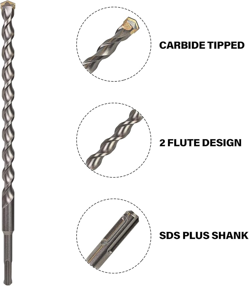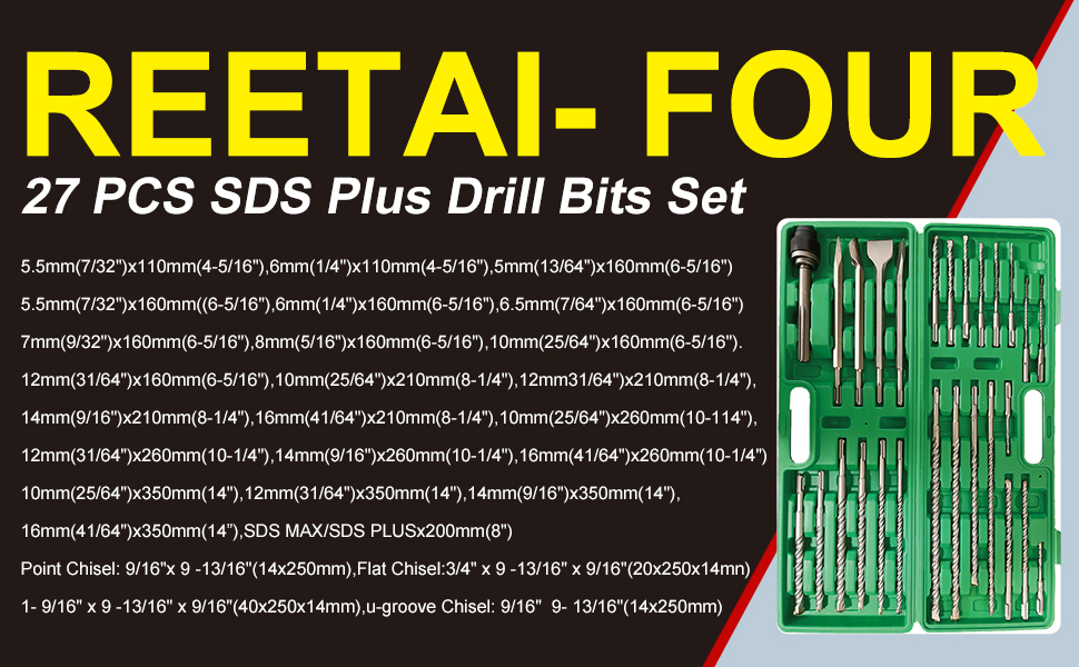CEMENTED CARBIDE: These SDS Plus Drill Bits Set chisels are made of Cemented carbide, with high hardness, corrosion and oxidation resistance, and has a long service life.