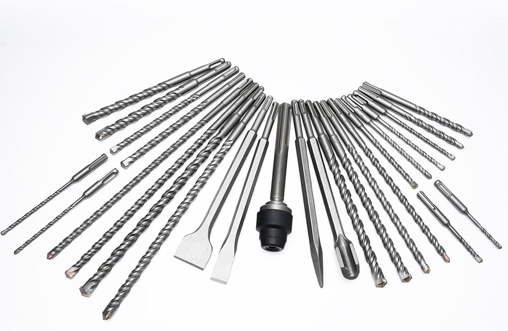 SPECIFICATIONS: In all 27 drill bits cemented carbide, of which 22 different size drill bits, a SDS MAX/SDS PLUS, a Point Chisel, a U-Groove Chisel and two different size Flat Chisels.