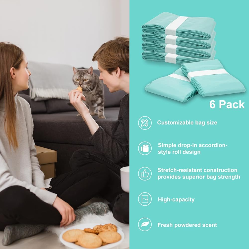 6 packs of refills can last up to 32 weeks for a cat. Each liner pack refill is over 32 feet long and 18 microns thick.