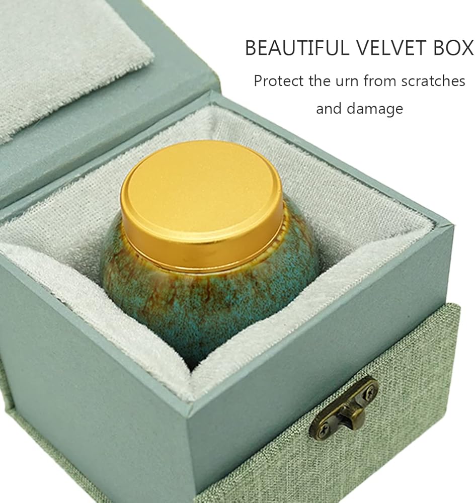 Velvet box: Each commemorative urn is equipped with a high-quality velvet box to protect the outside of the urn from scratches and damage. This beautiful and elegant box is very suitable for carrying and storing mini urn.