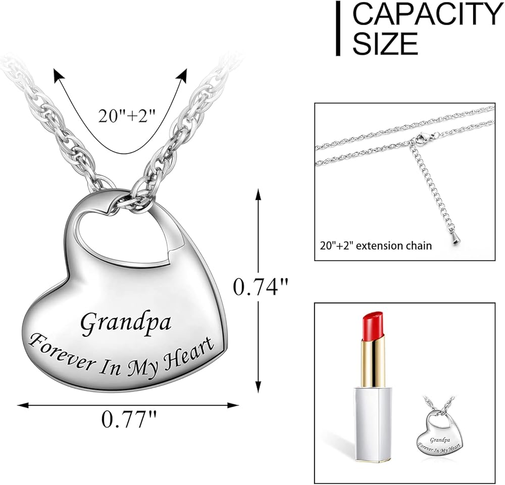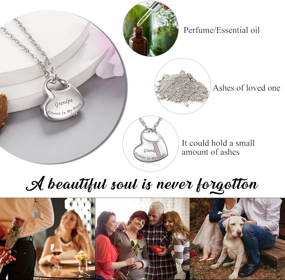 Cremation Urn Necklace - Heart cremation urn pendant could hold a small amount of the ashes of your loved ones. Keep the memories near to your heart. Memorial necklace is great keepsakes to memorialize your dad.