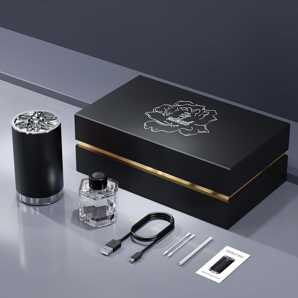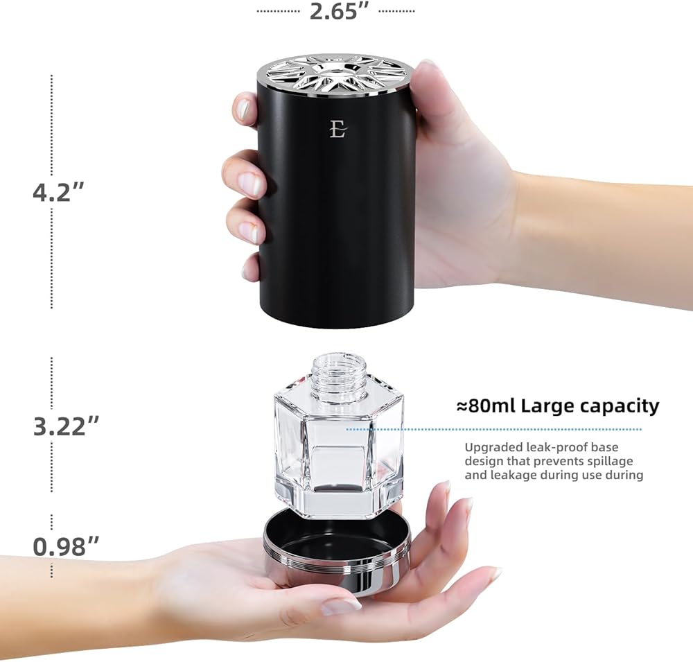 Packing List: Upon purchase of the EDKCXB smart car air freshener (Black),you'll receive a bottle of special perfume (80ml,Cologne),a USB cable,an English instruction manual,a beautifully packed gift box,a sponge,and two cotton swabs.The entire set,with its elegant design,serves as an excellent gift for colleagues,classmates,friends and family members,it will deeply express your care and consideration.