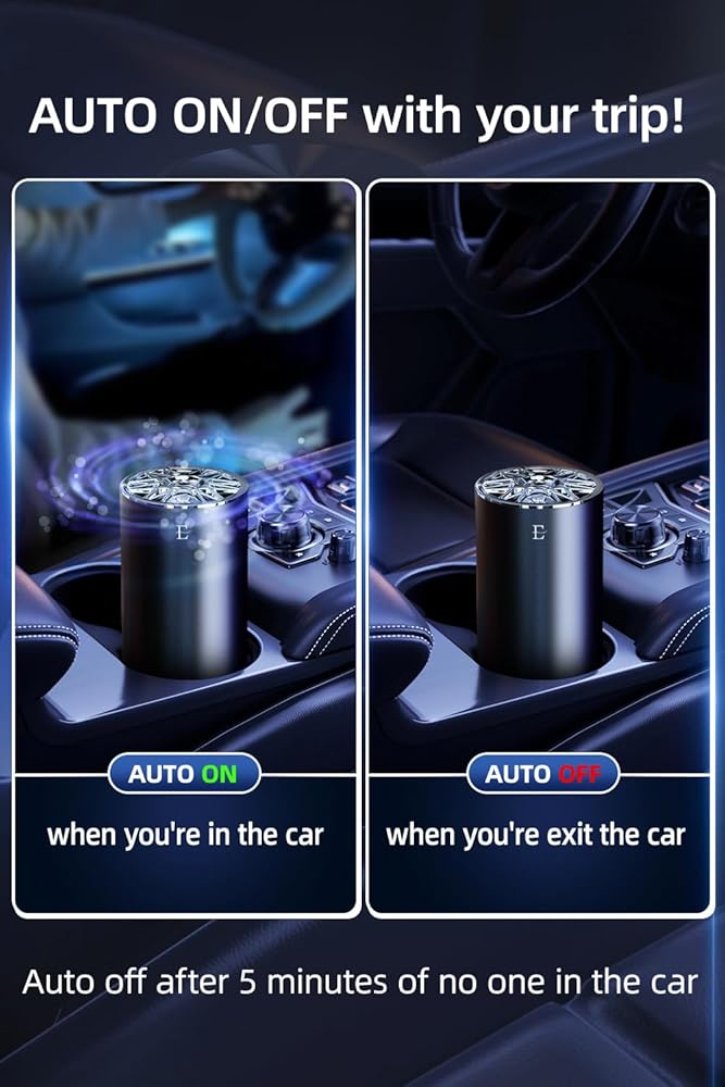 Auto ON/OFF:In vehicle mode,when the car is stationary without any vibrations,the car diffuser automatically enters standby mode after 5 minutes.When the car is started or there is a vibration,the car diffuser automatically wakes up and resumes the vehicle working mode.In home mode,if there's no sound or vibration detected in the surroundings,the car diffuser enters standby mode after 5 minutes.Upon detecting sound,the car diffuser automatically wakes up and resumes the home working mode.