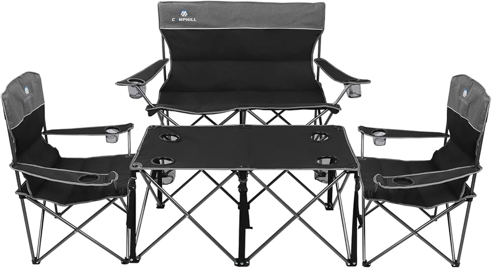 CAMPHILL Camping Chair Set of 3, Outdoor Folding Camping Chairs for Heavy People with Cup Holder & Carry Bag,Collapsible Chair Include One Sofa Chair and Two Single Chair,Support up to 500lbs