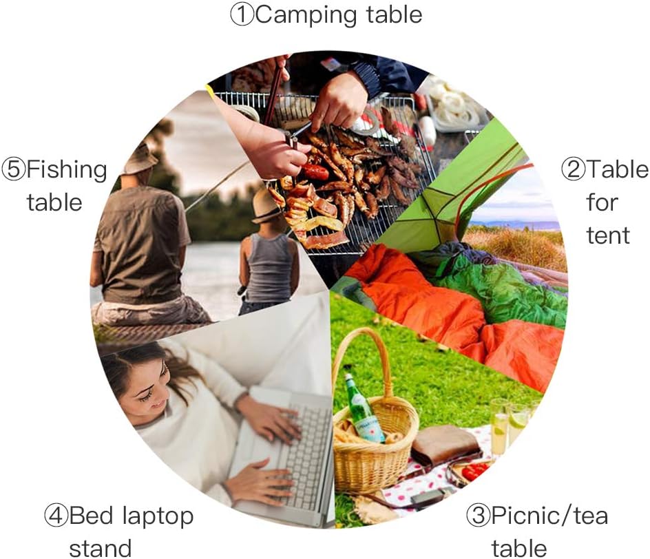 Highly applicable and multifunctional-This foldable portable camping table is suitable for all seasons for different occasions. Perfect for picnics, festivals, BBQs, camping, fishing, traveling, hiking,garden, park, beach, etc.as well as indoor usage as bed laptop stand.