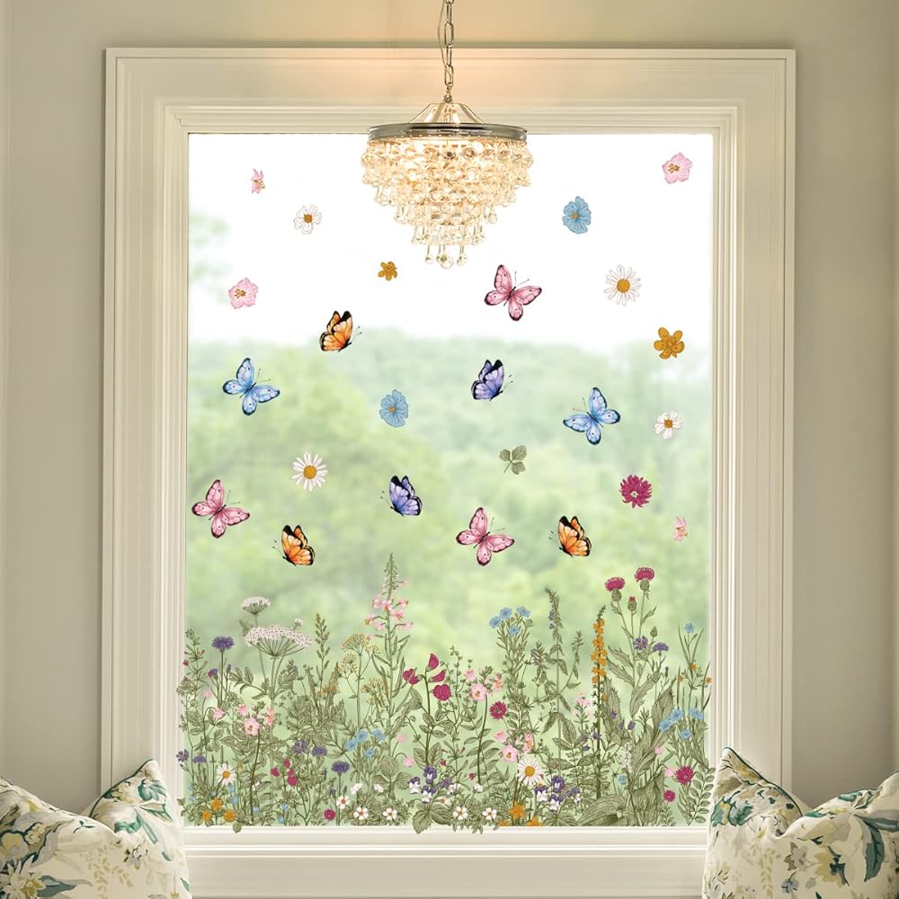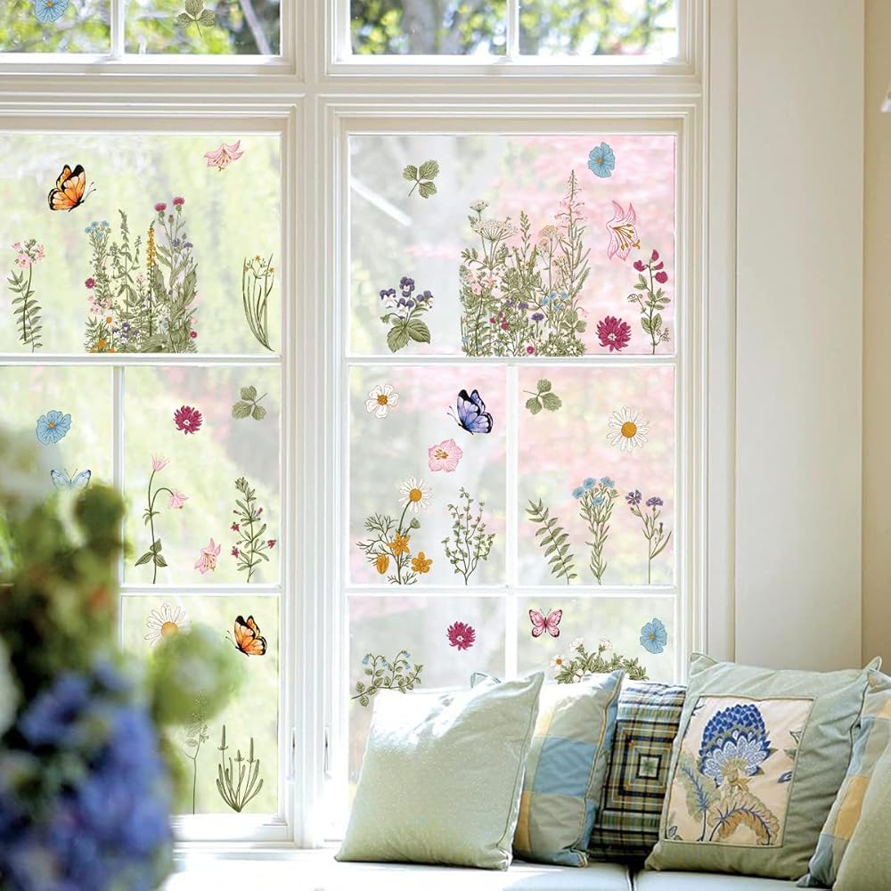 Unique Design -- Spring Summer window stickers are special designed with classic patterns,such as Tulip Butterfly Flower ,etc, so adorable that both kids and adults are keen on such Spring Summer widow decor.