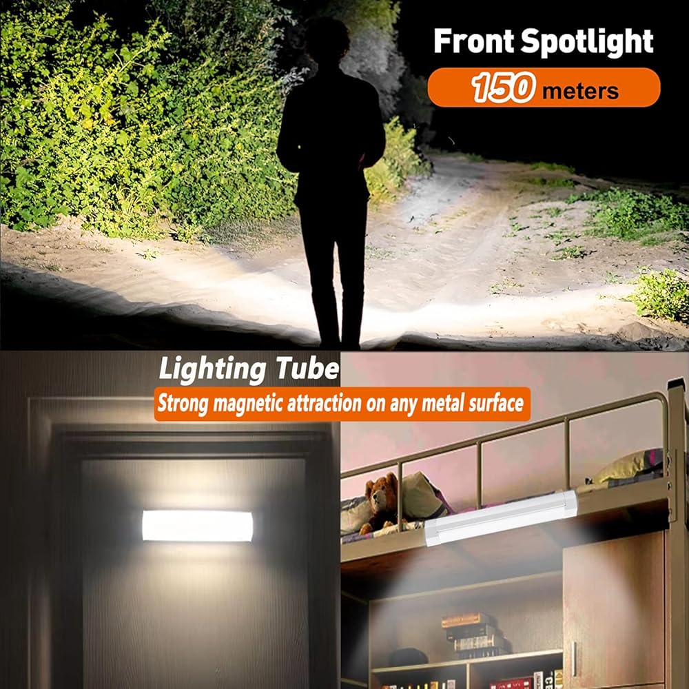 【Portable & Lightweight】The IP67 emergency light measures 7.93X1.48X1.48inches (20.15X3.75X3.75cm), weighs only 0.586lbs (0.266kg). its lightweight body allows you can take it protable and use it anywhere. Comes with two lanyards and magnets on the back side, which can be hung on a tent or adsorbed on metal.