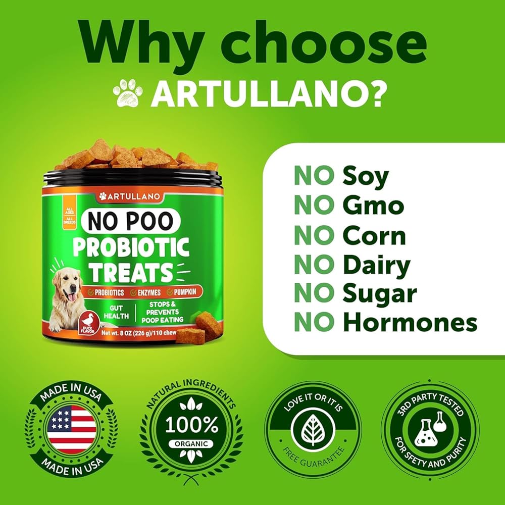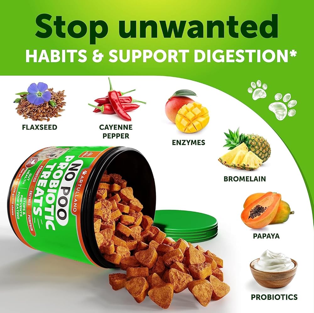 No Poo Treats - Coprophagia Deterrent for Dogs - Prevent Dog from Eating Poop - Stop Eating Poop for Dogs, Stool Eating Deterrent - Probiotics & Digestive Enzymes - Forbid for Dogs Chews - Made in USA