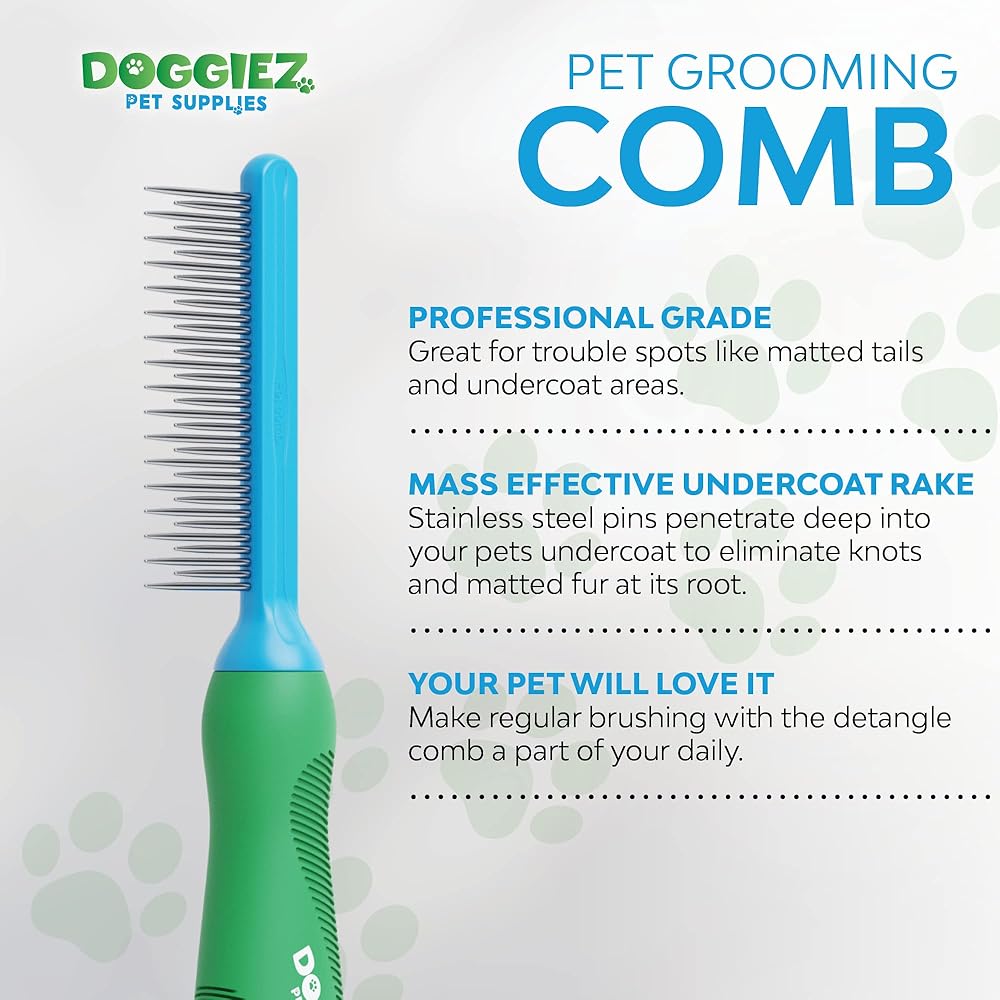 PET GROOMING COMB - Effortlessly comb and brush your dog or cat and eliminate stubborn tangles, matted fur and hairballs. The double length design combs cats and dogs of all hair lengths and can handle undercoat fur to deshed and groom effectively.l