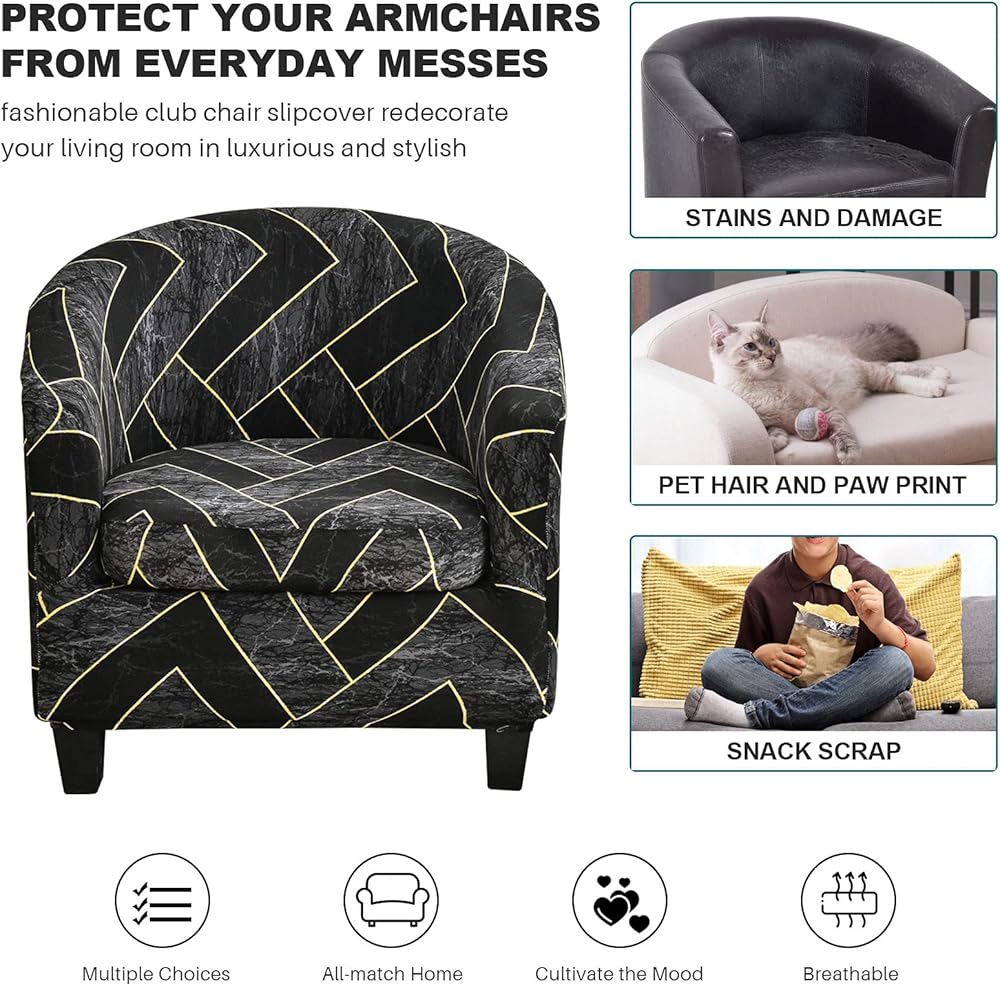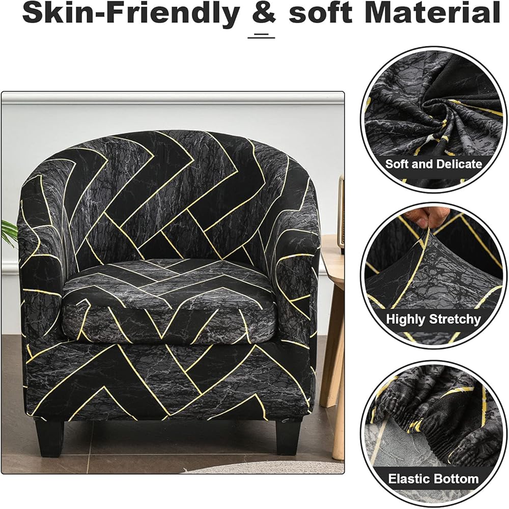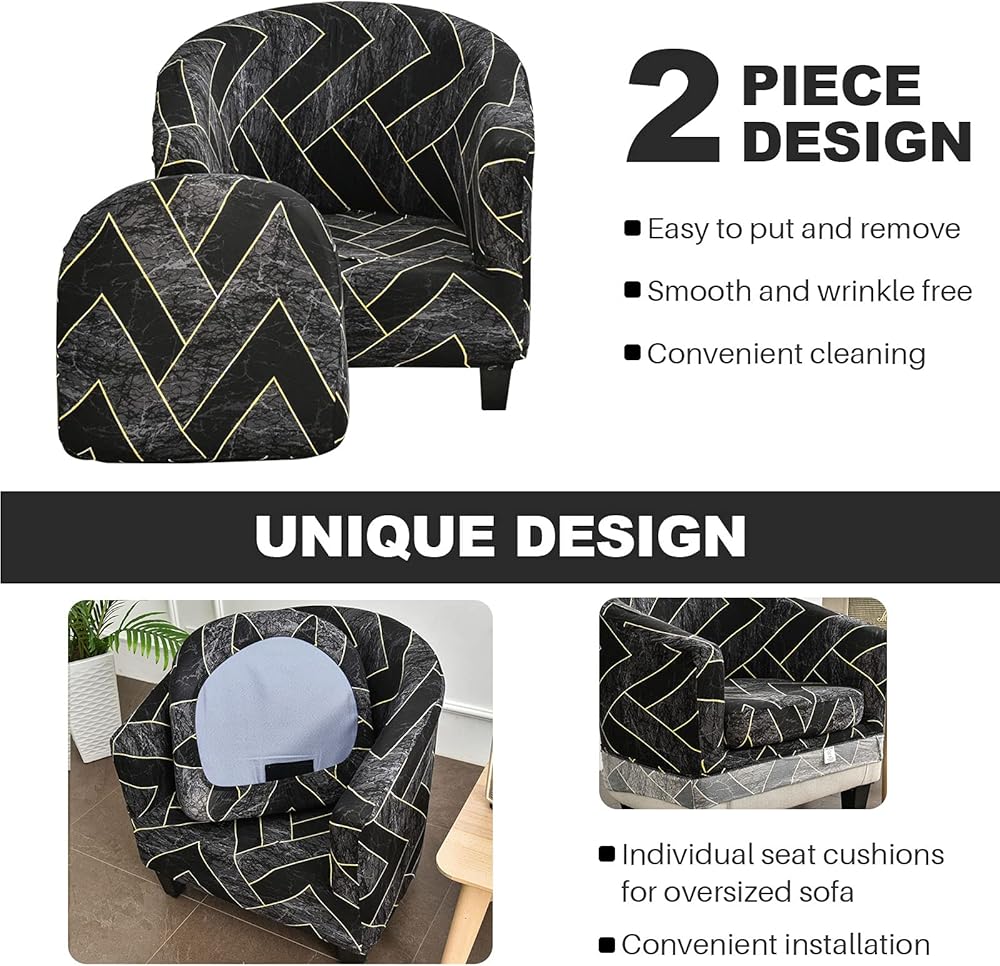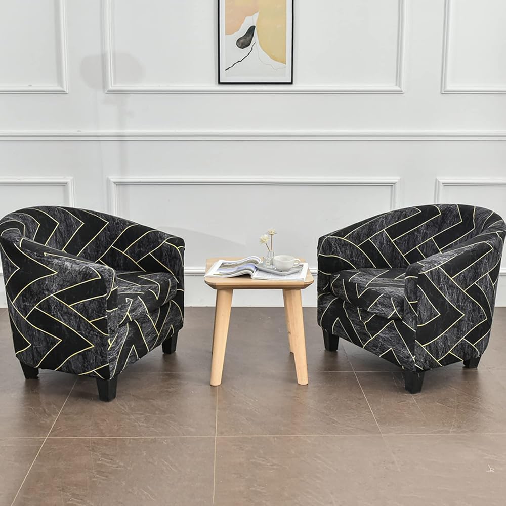 MIFXIN Tub Chair Slipcovers 2 Piece Stretch Printed Club Chair Cover with Cushion Cover Soft Spandex Round Barrel Chair Slipcovers Couch Protector for Living Room Hotel Counter (Black)