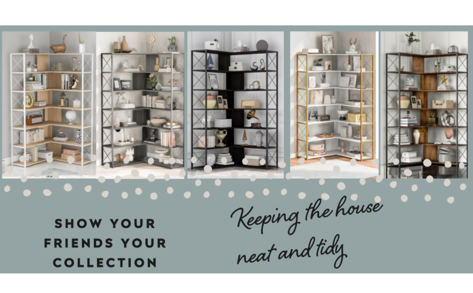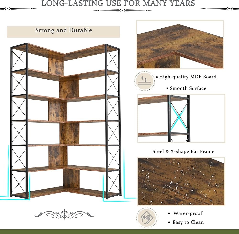 Tall Bookshelf: Our corner bookshelf stands tall at 70.87” and has ample storage space for books, decor, and other essentials, maximizing your space and keeping it organized. Our 7-tier bookshelf is perfect for organizing books and as a display shelf in your living room, office or bedroom.