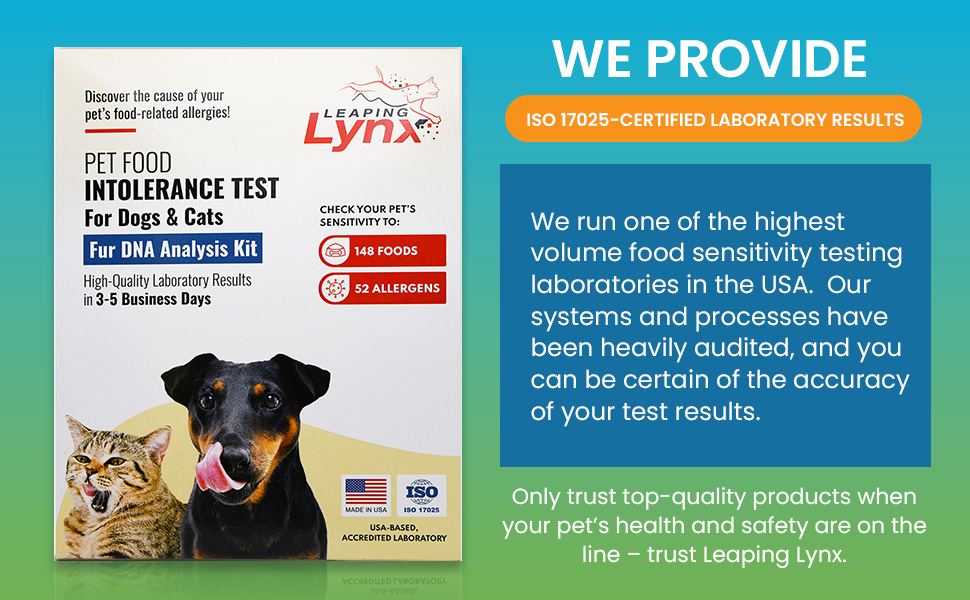 ✅ ISO 17025-CERTIFIED LAB RESULTS, FEE INCLUDED: our laboratory is one of the top animal testing labs in the USA, having tested hundreds of thousands of samples. We have an ISO 17025 certification, meaning we have been heavily audited for safety and reproducibility of results. You can trust your test results to be accurate.