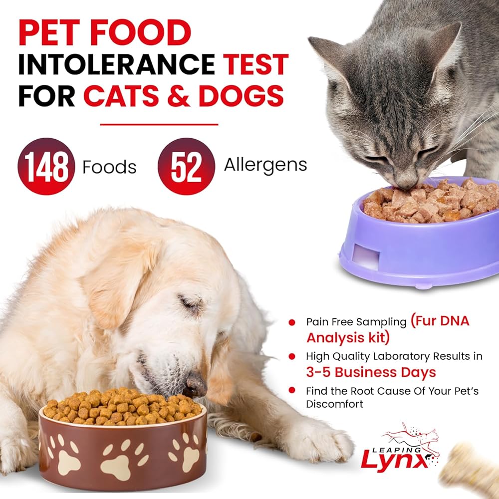 Vet-Recommended Pet Food Sensitivity & Intolerance Test Kit for Dogs & Cats, Lab Fee Included, Results in 3 Days - Fur Analysis for ~200 Foods & Allergens, Allergy Test Kit for All Breeds & Ages